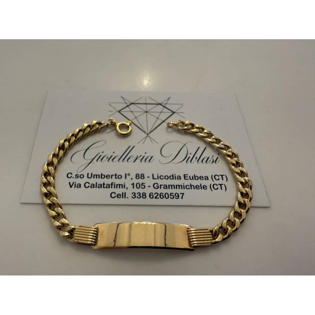 BRACCIALE Uomo Donna In ORO GIALLO 18 Karati 750% Maglia Grumetta Con PIASTRINA