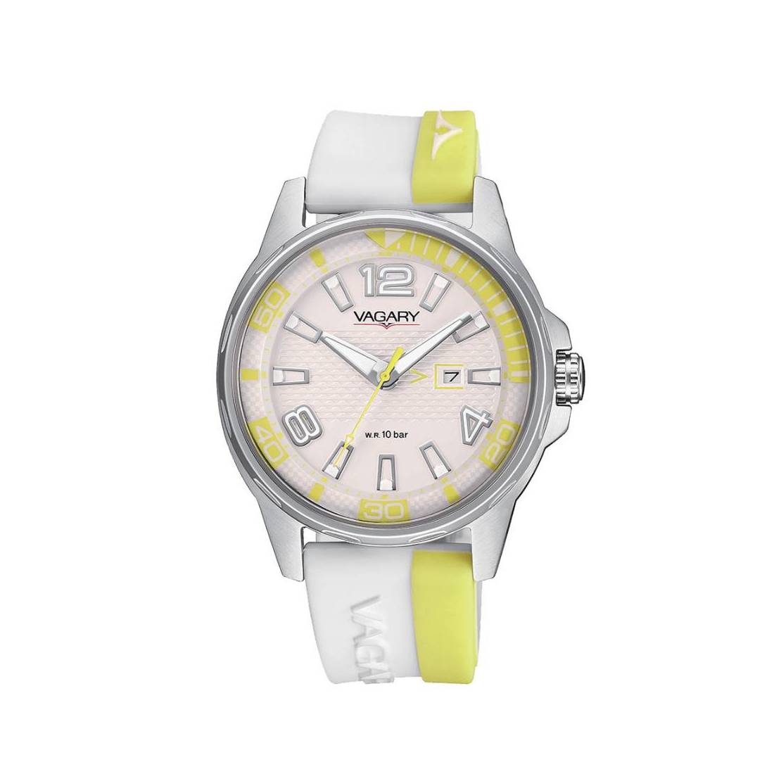 Cassa in acciaio. Cinturino in silicone. Fondo serrato a vite. WR 10 bar.