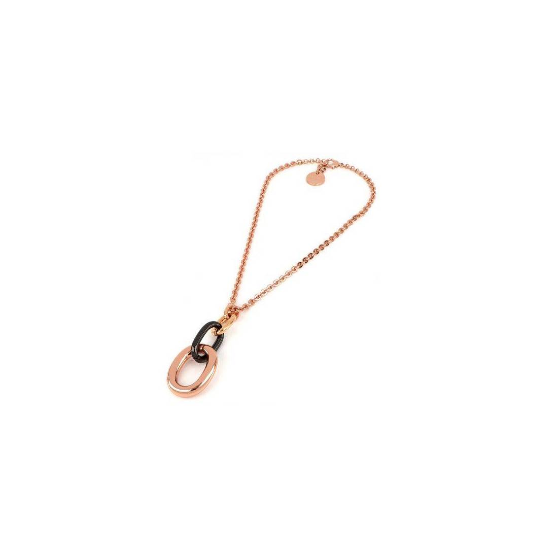 Collana in bronzo lucido bicolore con catena forzatina, pendente con maglie più grandi a scalare e chiusura a moschettone ed anelli di allungamento.