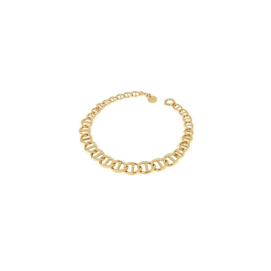 Collana in bronzo lucido con catena traversino due lati. Chiusura con moschettone ed anelli di allungamento. Un gioiello davvero unico che si ispira ad un amato classico della moda catene reinventandolo in chiave moderna, più leggera e giovanile.