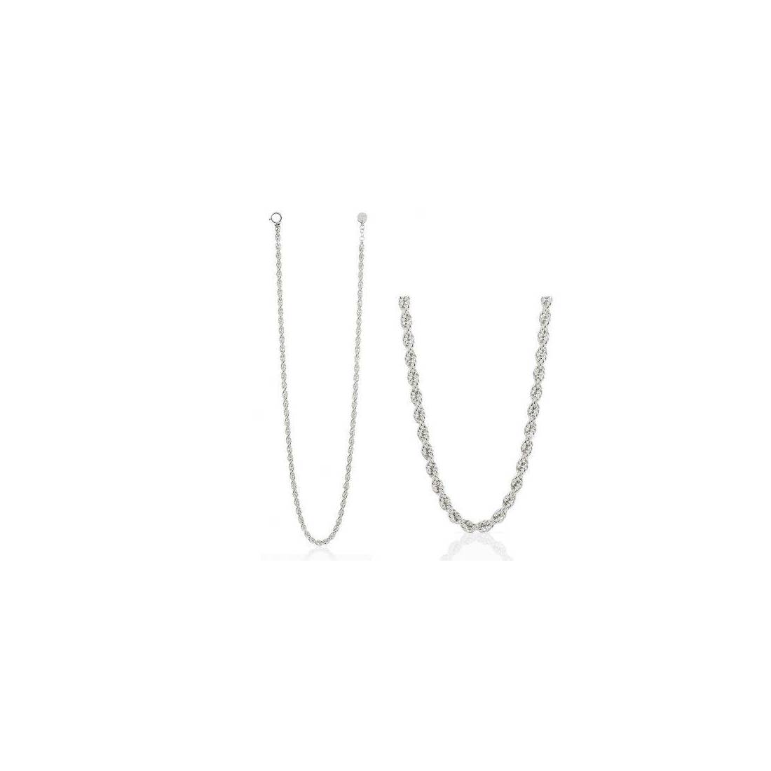 Elegante collana lunga in maglia corda. Lunghezza 90 cm. Tradizione orafa e design raffinato si incontrano dando vita ad un gioiello dall'allure chic e dal mood casual.
