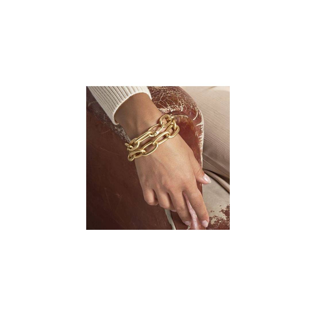 Bracciale in bronzo con catena forzatina e chiusura a moschettone. Se ti piacciono i gioielli in catena non puoi perderti questo bracciale. Un classico moderno, perfetto per dare un tocco decisivo al tuo stile. Abbinalo alla collana per un outfit dall'effetto ultra glam.