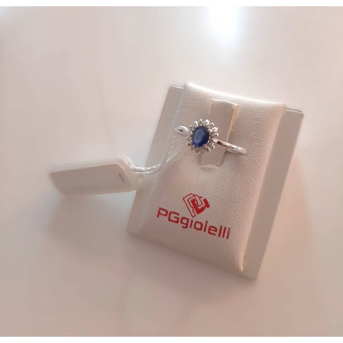 Anello con Zaffiro in oro bianco 18 kt e diamanti