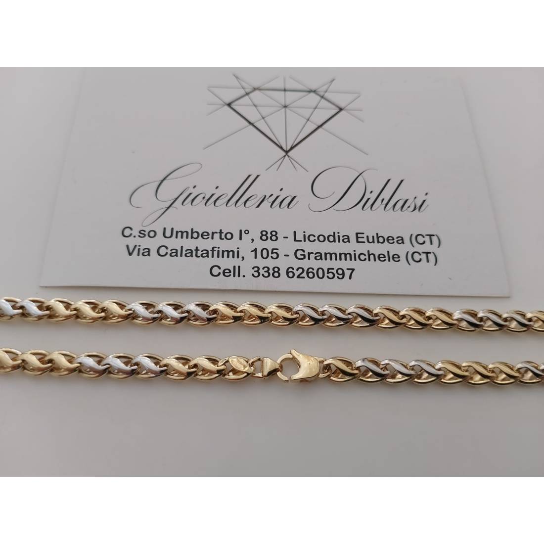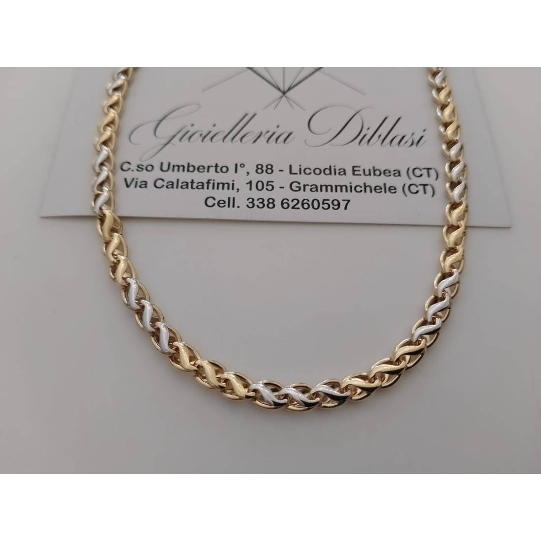 COLLANA GIROCOLLO Uomo Donna ORO GIALLO BIANCO 18 KT 750% Maglia Bicolor Collier