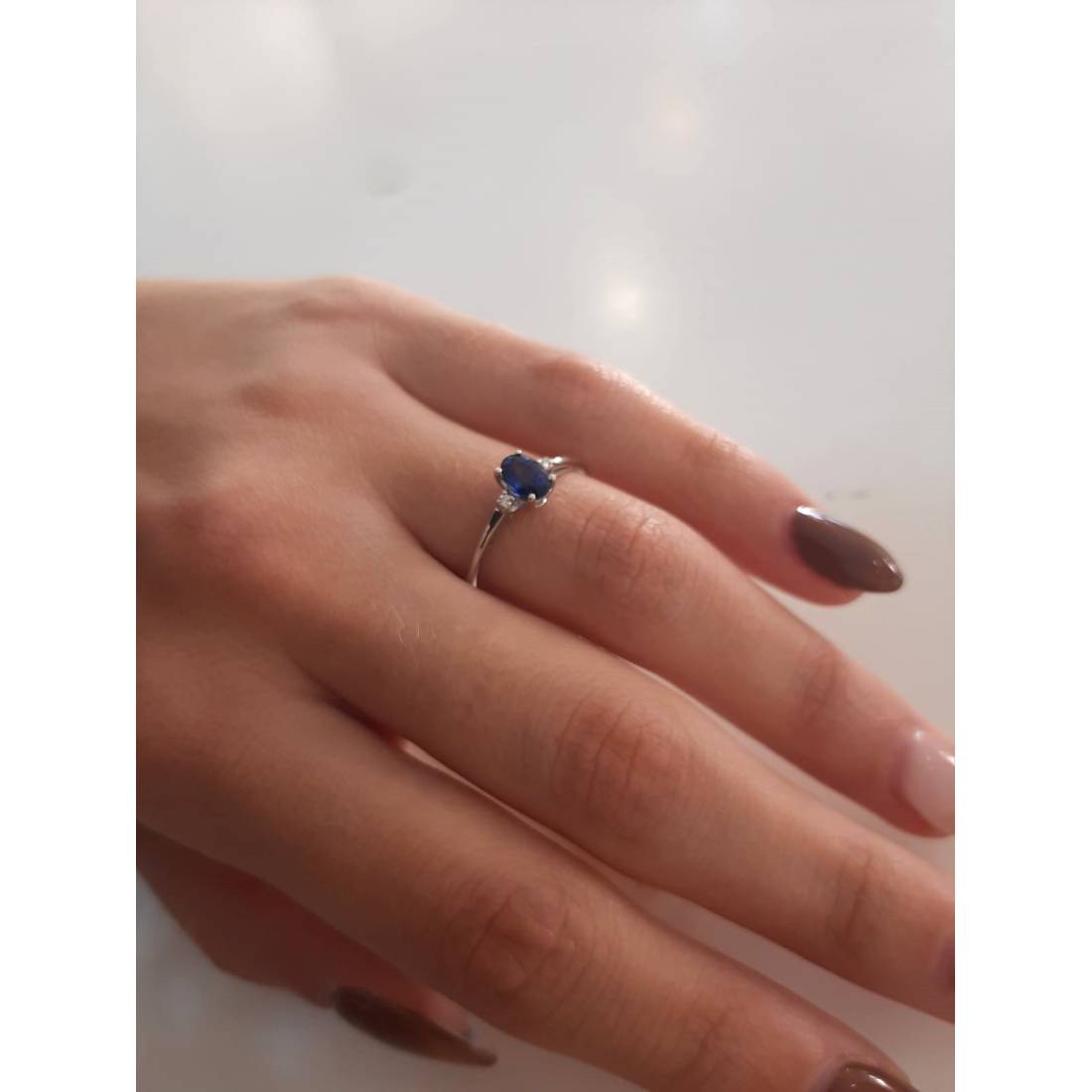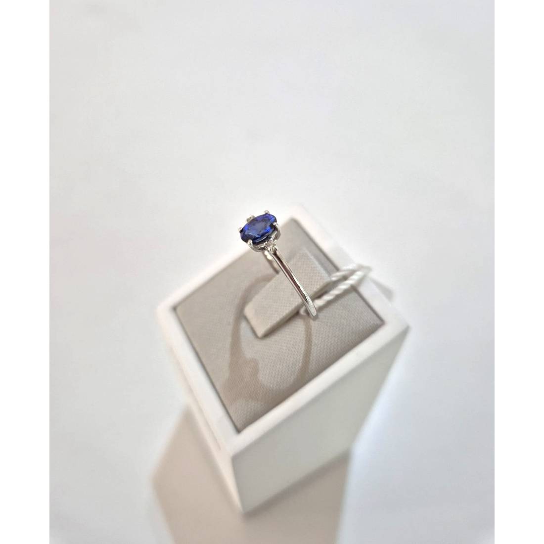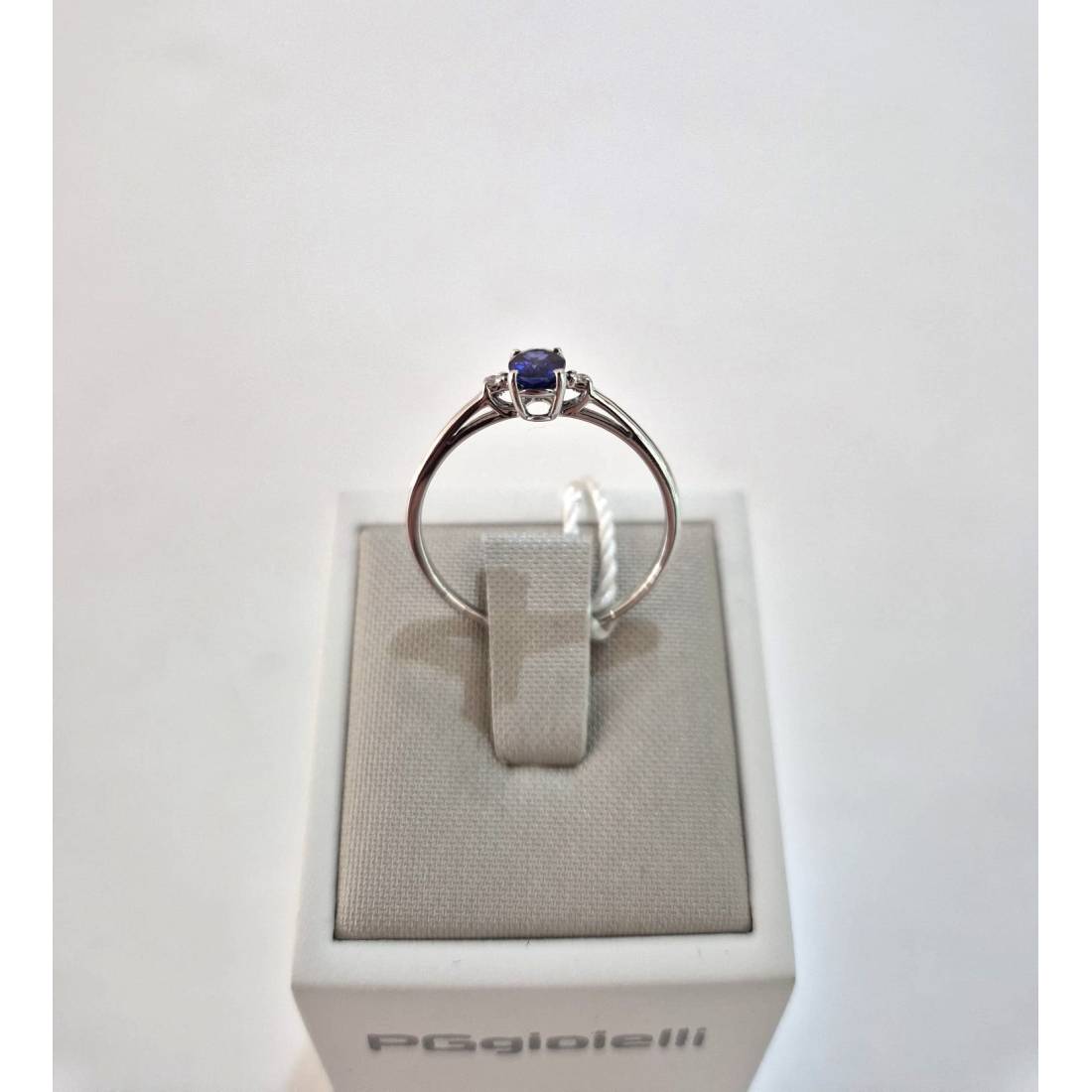 Anello con Zaffiro in oro bianco 18 kt e diamanti