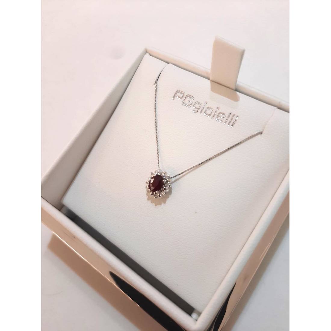 COLLANA con RUBINO in oro bianco 18kt e diamanti