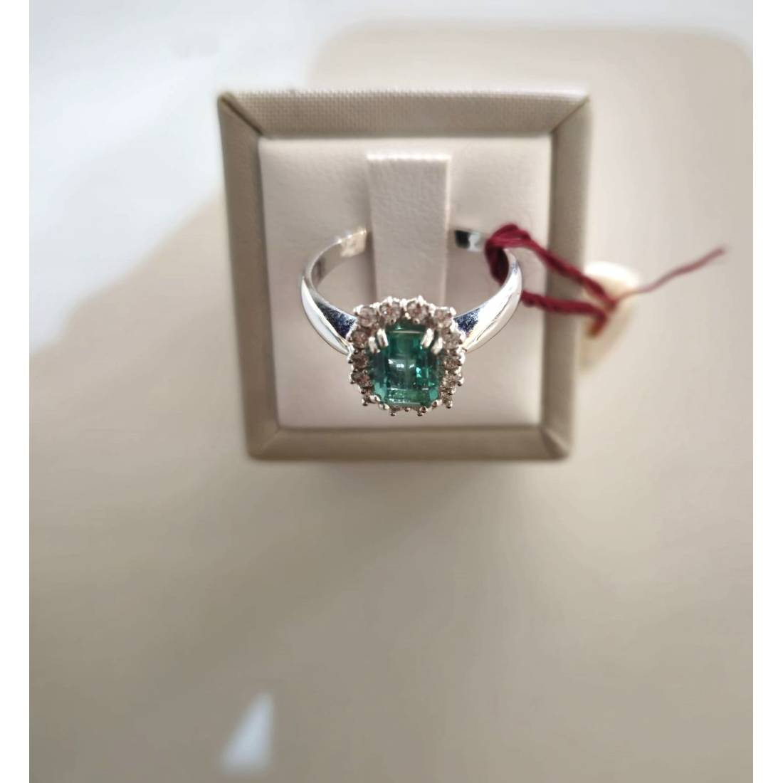 Anello con Smeraldo in oro bianco 18 kt e diamanti