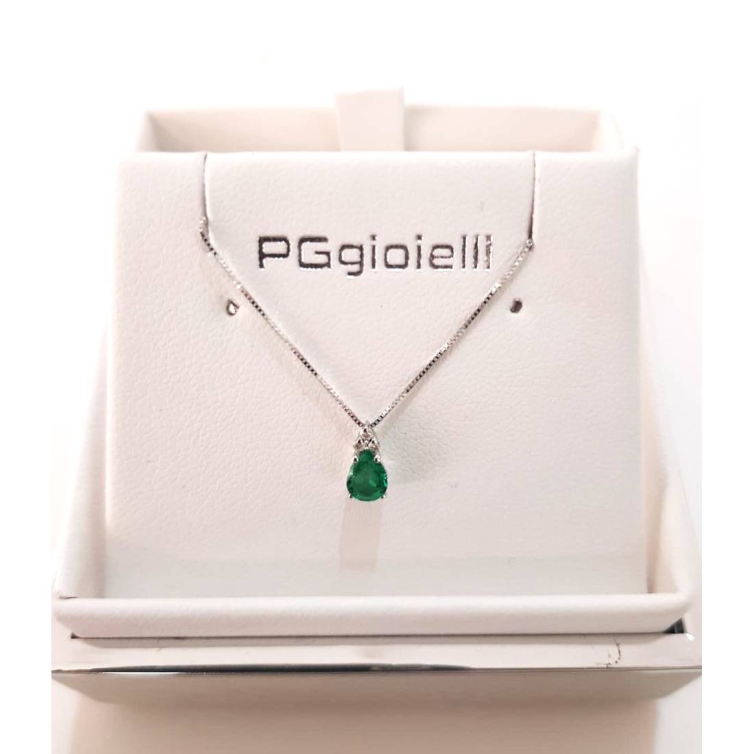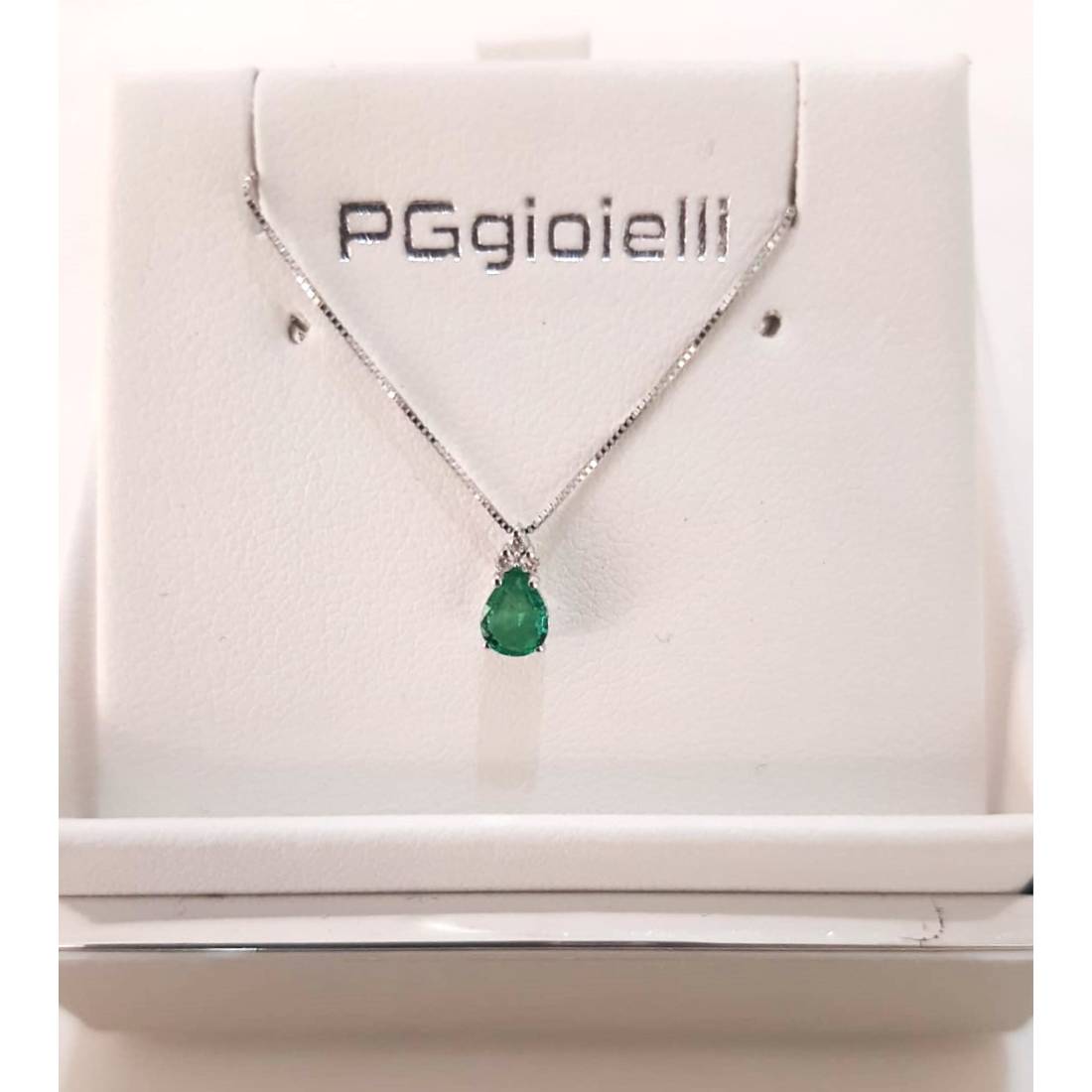 COLLANA SMERALDO A Goccia E DIAMANTI In Oro Bianco 18 Karati 750% PG GIOIELLI