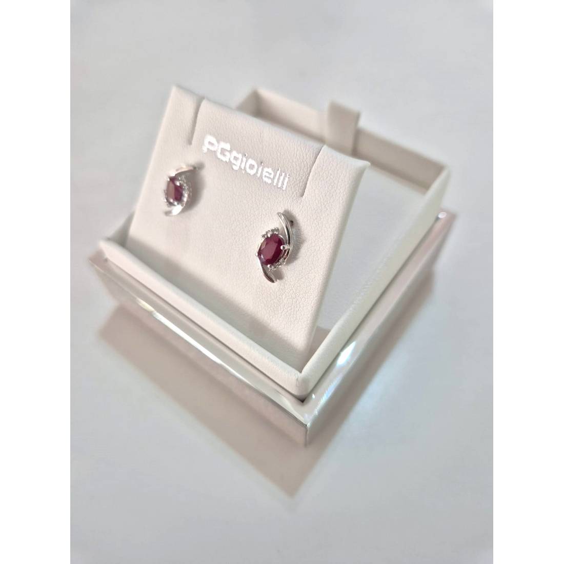 ORECCHINI con RUBINO in oro bianco 18kt e diamanti