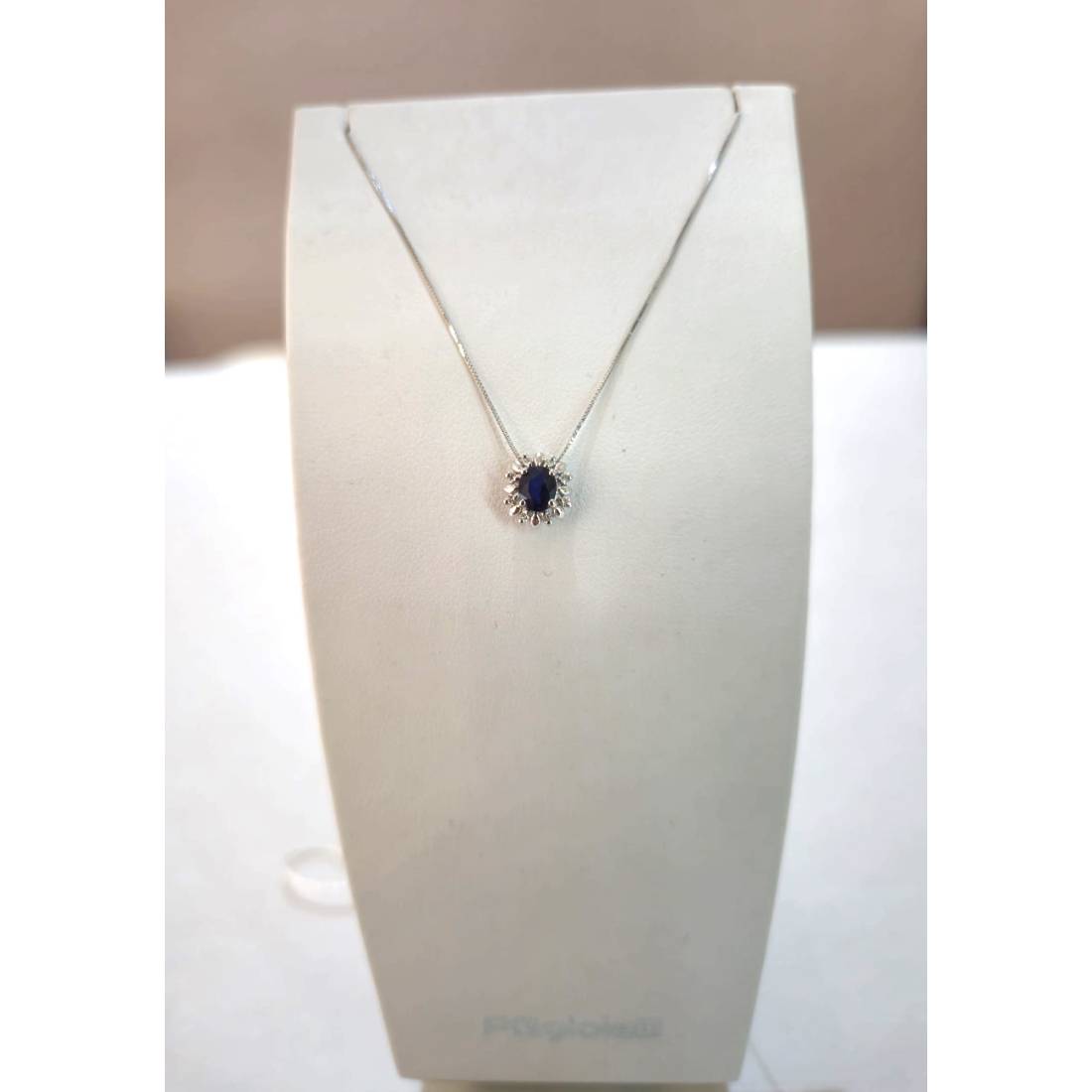 COLLANA con ZAFFIRO in oro bianco 18kt e diamanti