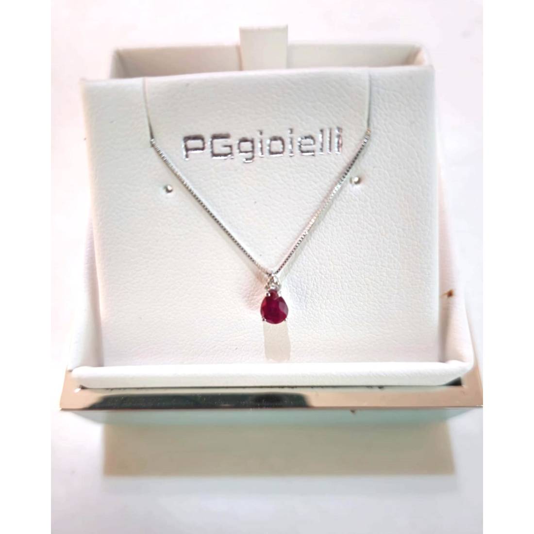 COLLANA con RUBINO in oro bianco 18kt e diamanti