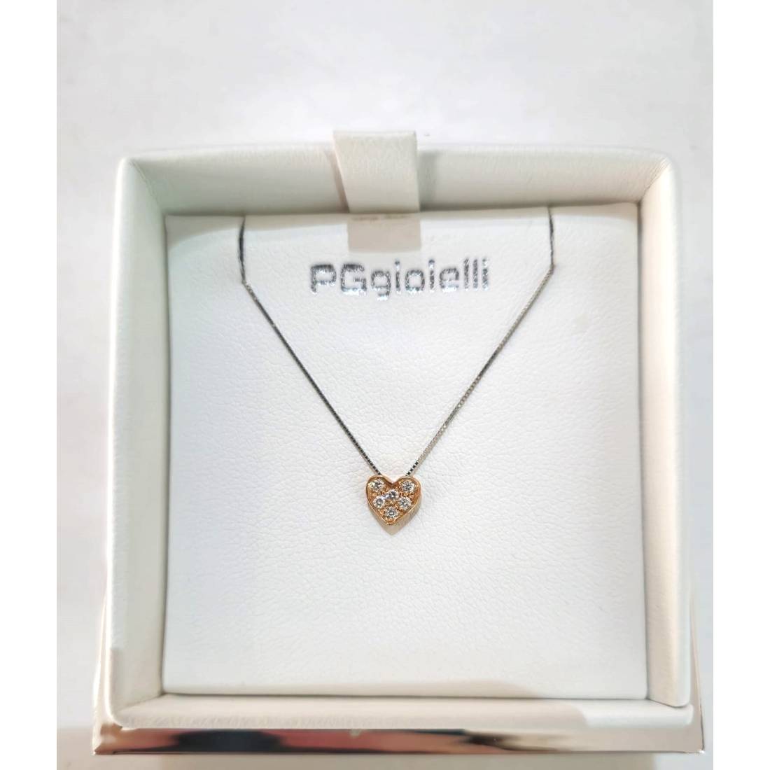COLLANA Cuore con DIAMANTI in oro bianco e rosa 18kt