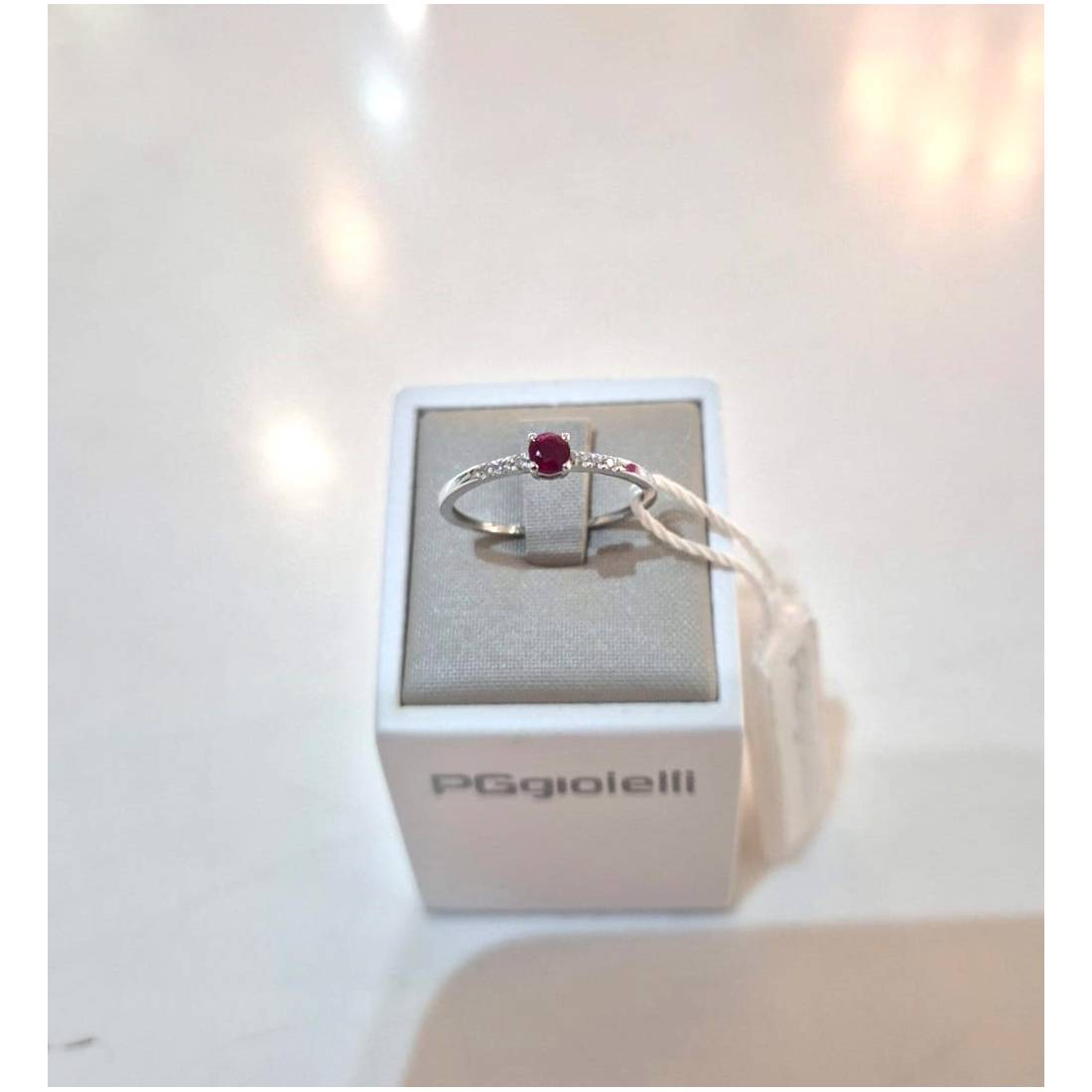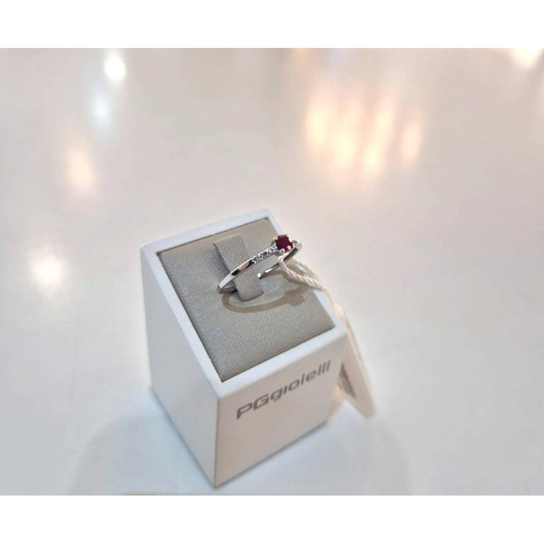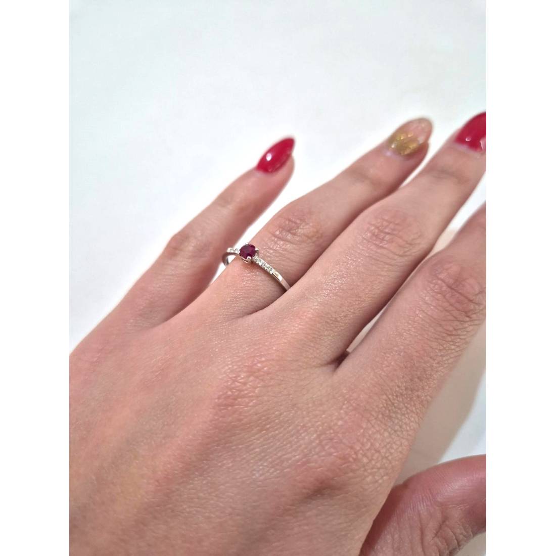 Anello con Rubino in oro bianco 18 kt e diamanti