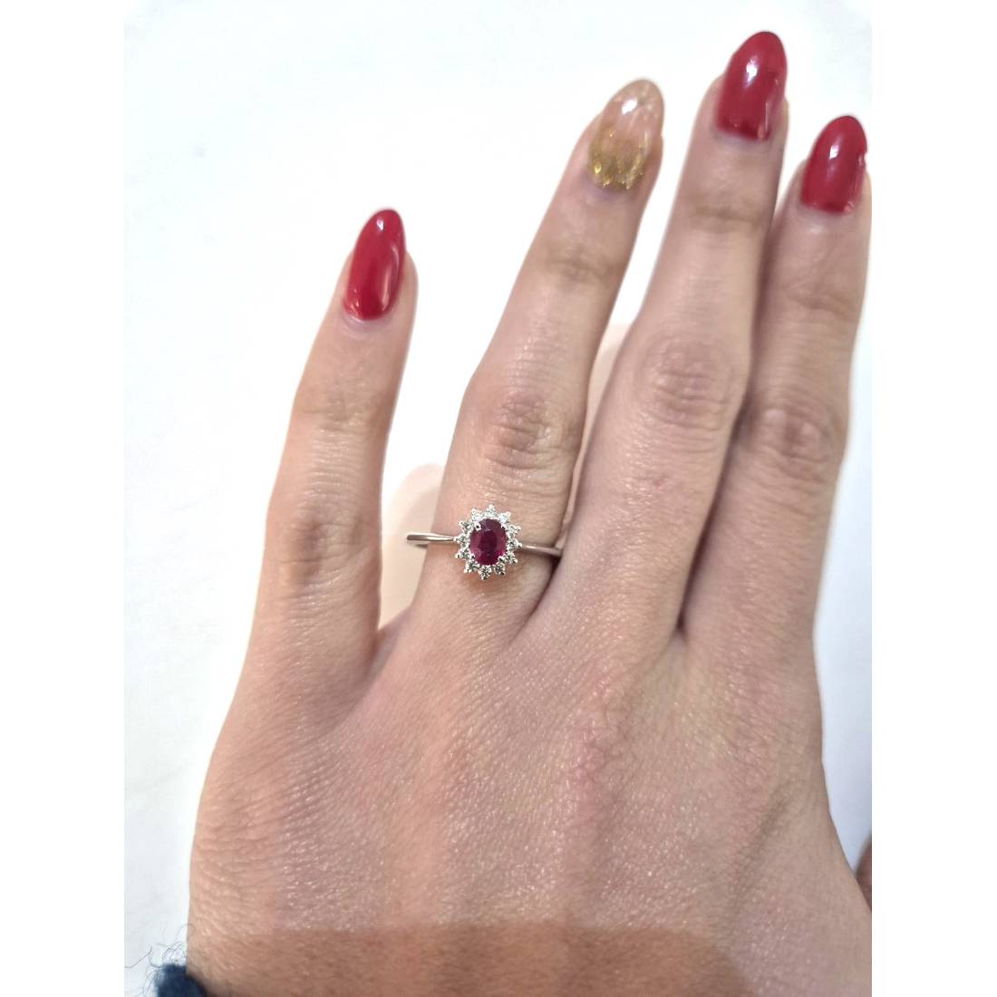 Anello con Rubino in oro bianco 18 kt e diamanti