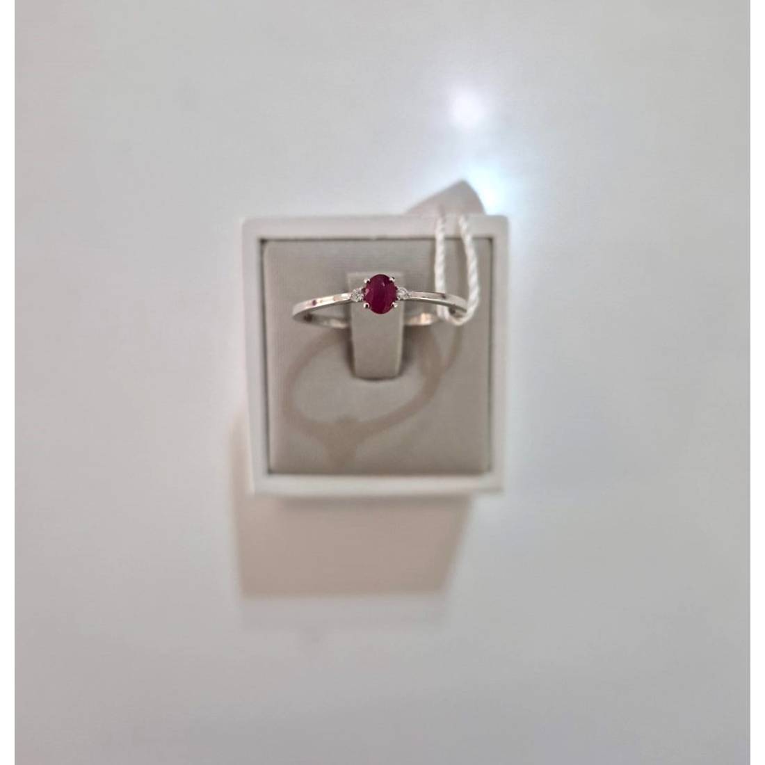 Anello con Rubino in oro bianco 18 kt e diamanti