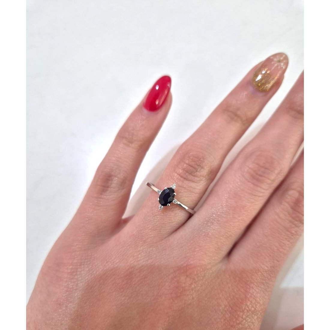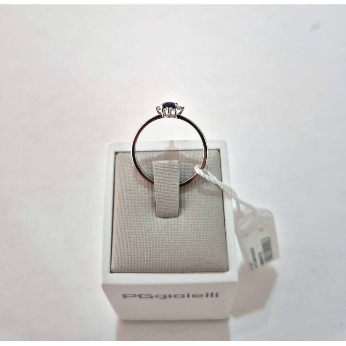 Anello con Zaffiro in oro bianco 18 kt e diamanti