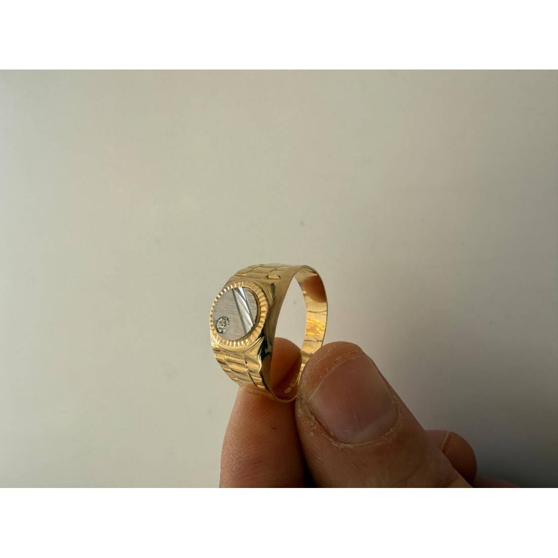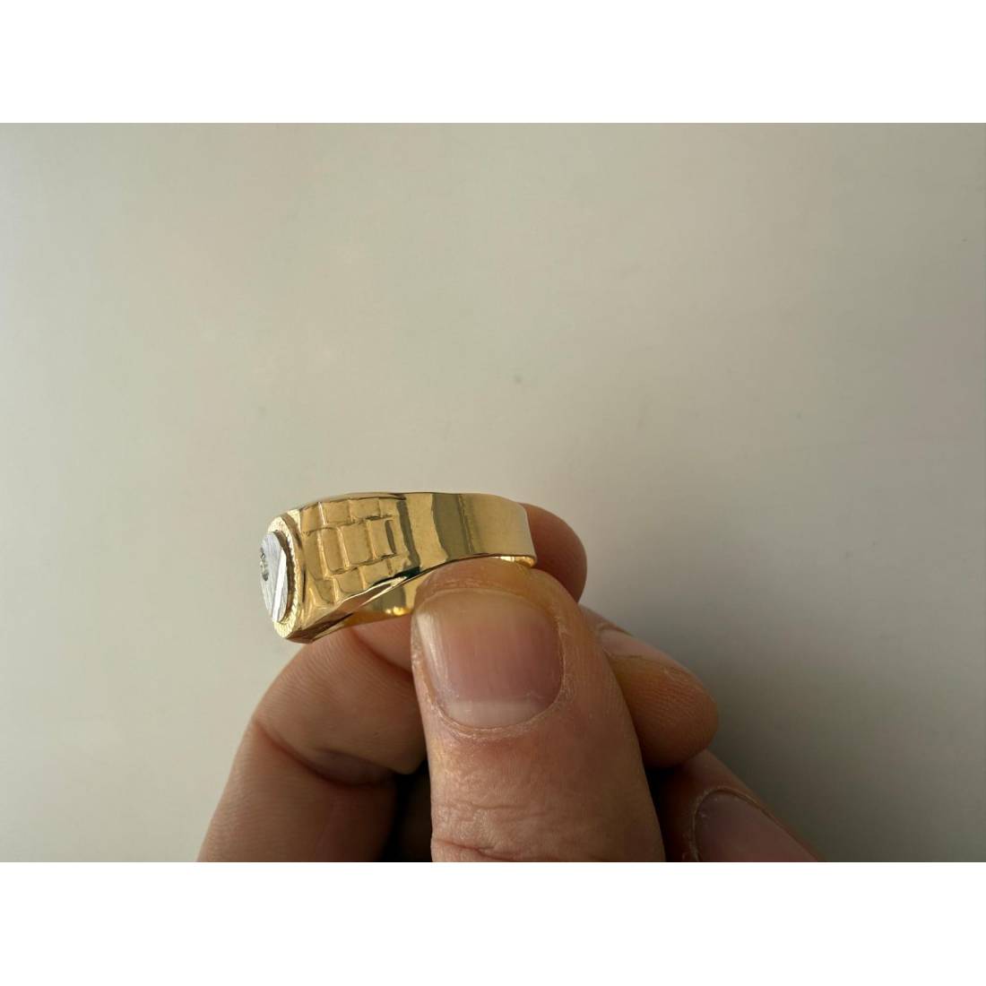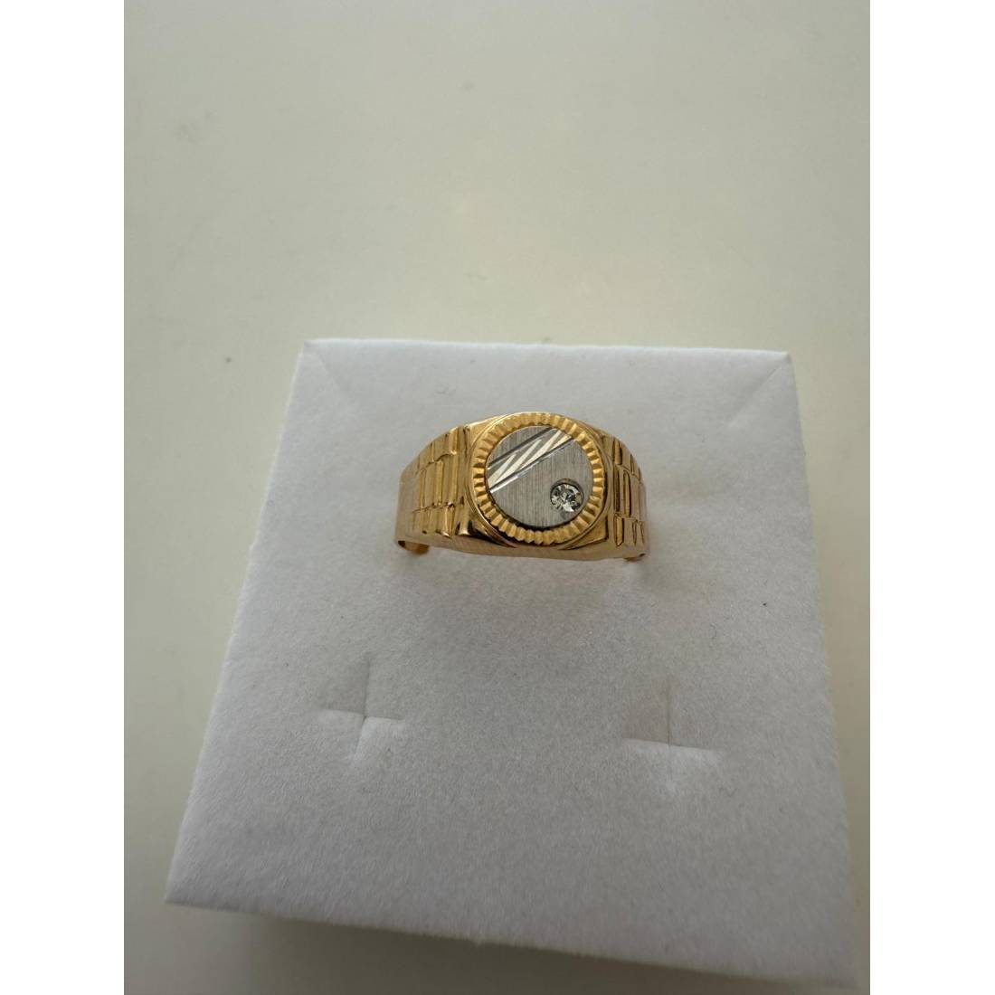ANELLO Da Uomo In ORO 18 Karati 750% GIALLO E BIANCO Bicolore Tondo Con Zircone