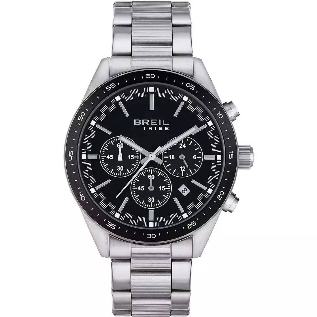 OROLOGIO BREIL TRIBE FAST EW0570 Uomo In Acciaio NERO Argento Cronografo Datario
