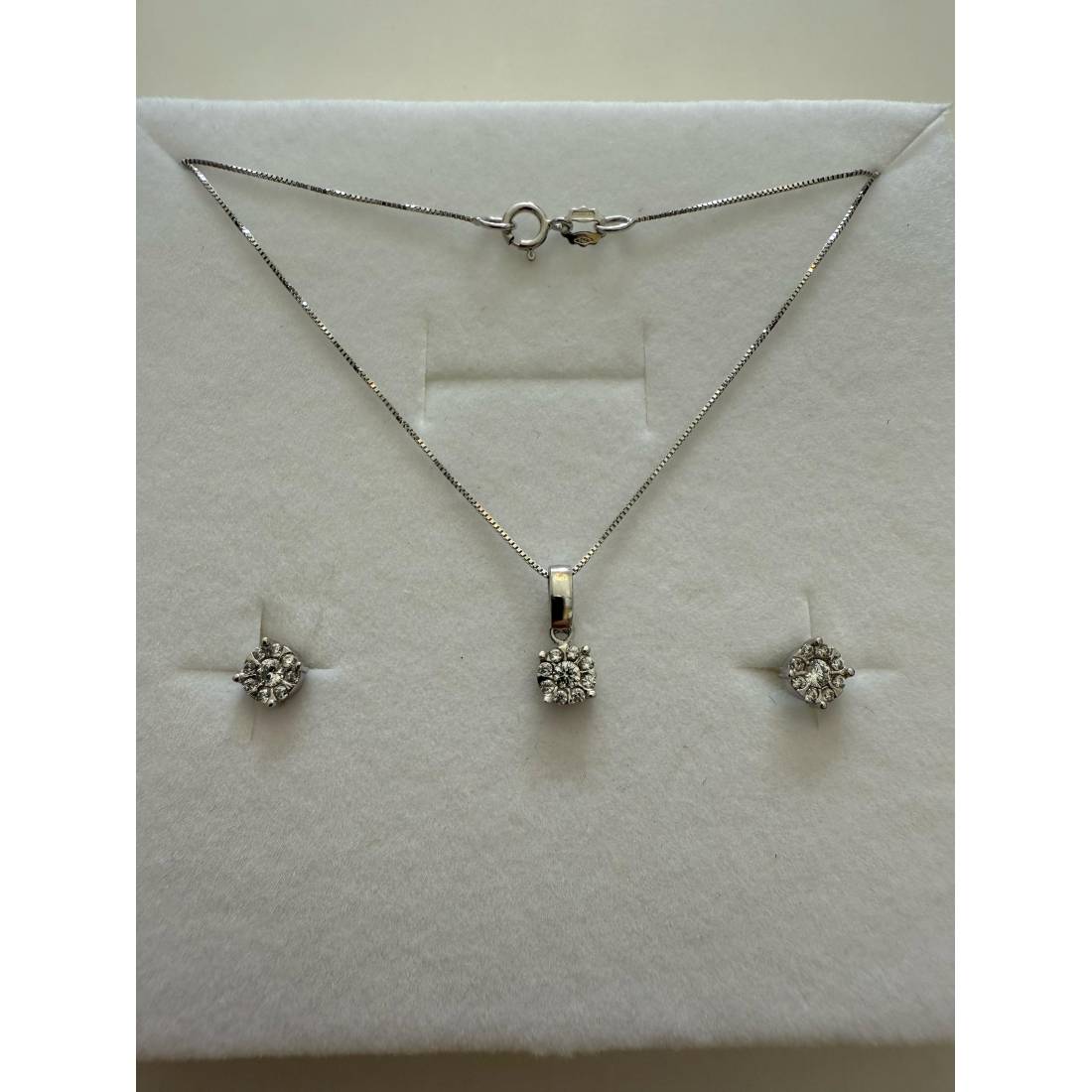 Parure COLLANA PUNTO LUCE Con ORECCHINI In ORO BIANCO 18 KARATI 750% E ZIRCONI