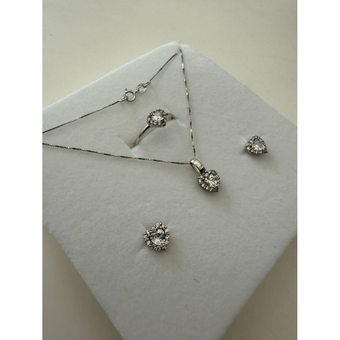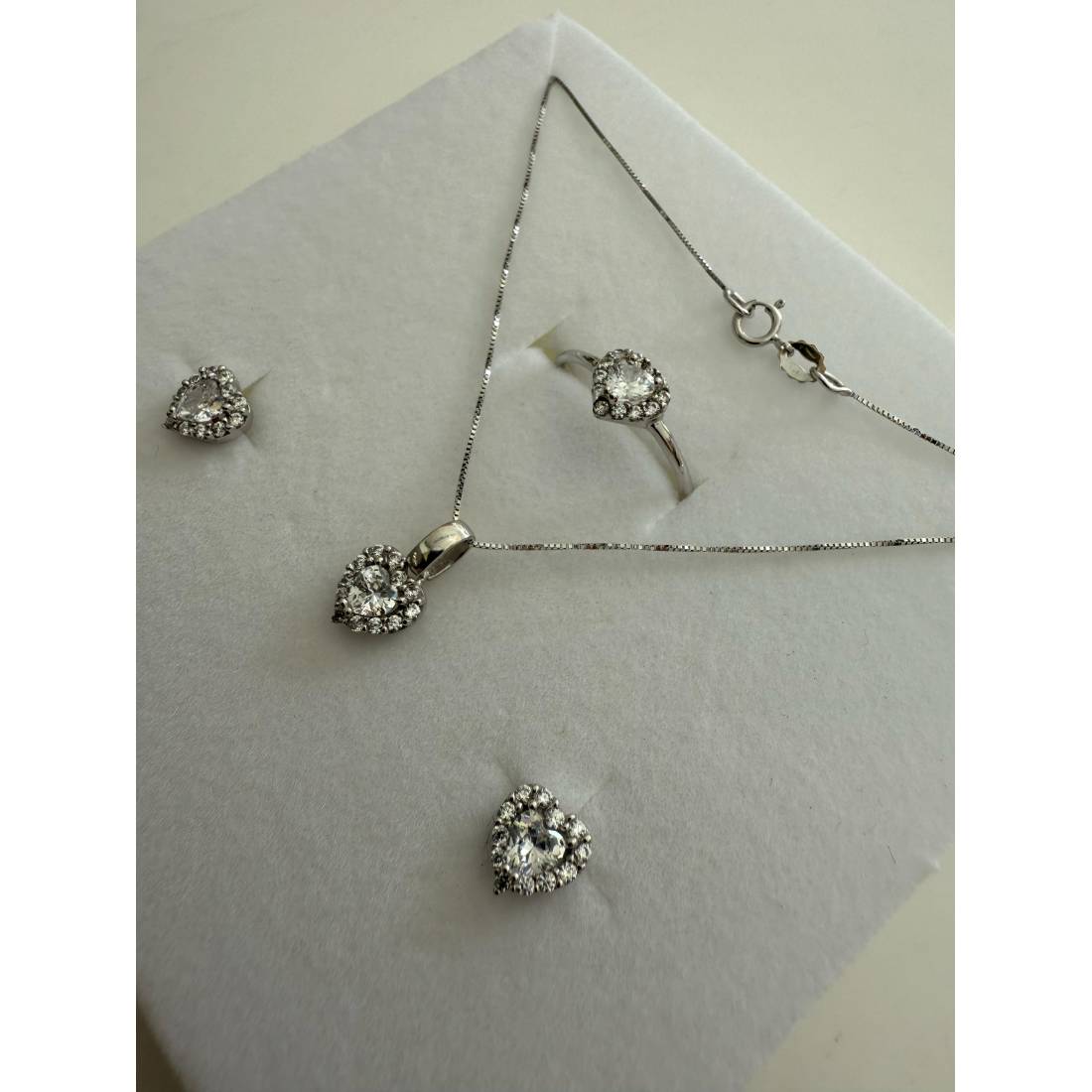 Parure COLLANA PUNTO LUCE ORECCHINI ANELLO ORO BIANCO 18 KARATI 750% E ZIRCONI