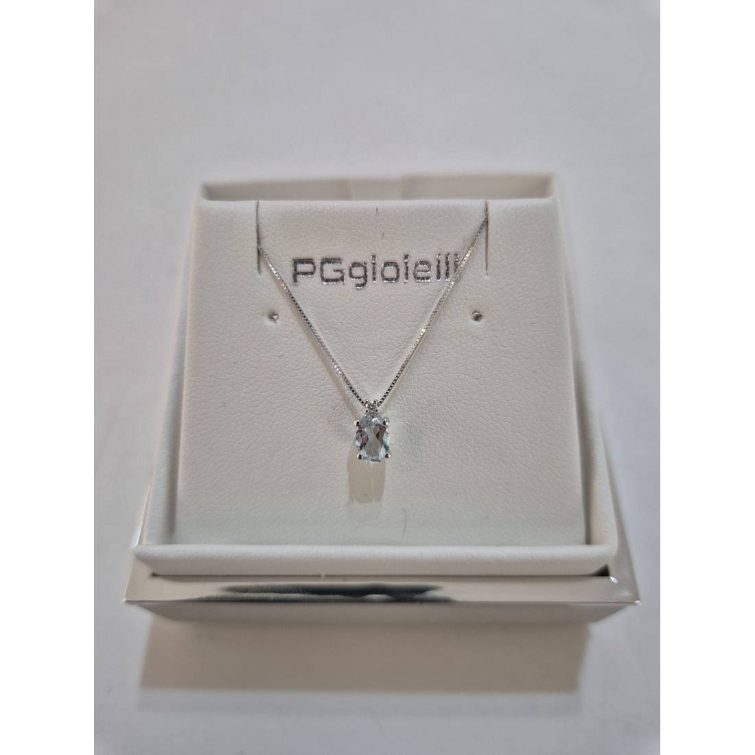 COLLANA con ACQUAMARINA in oro bianco 18kt e diamanti
