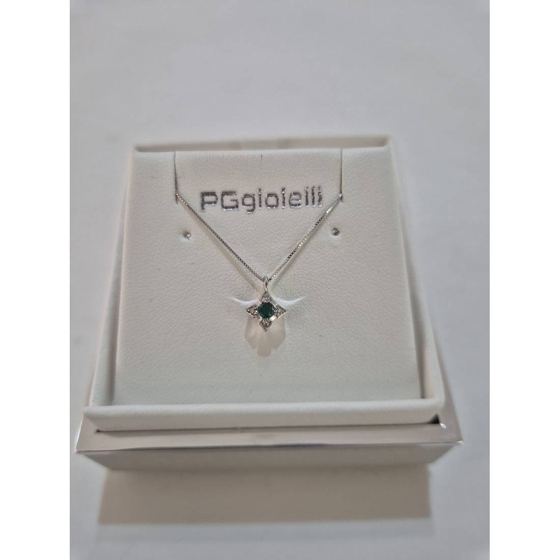 COLLANA con SMERALDO in oro bianco 18kt e diamanti