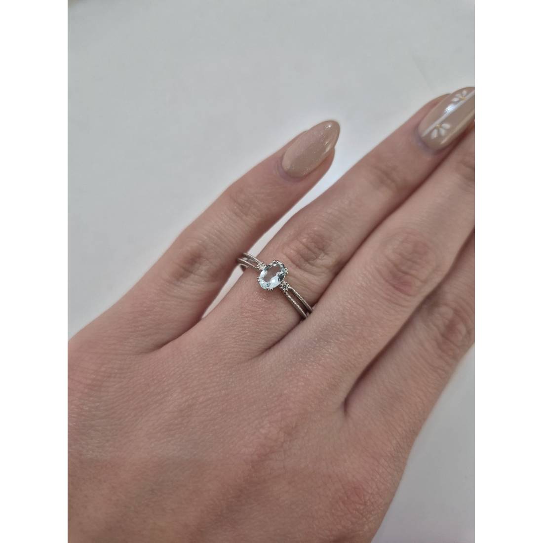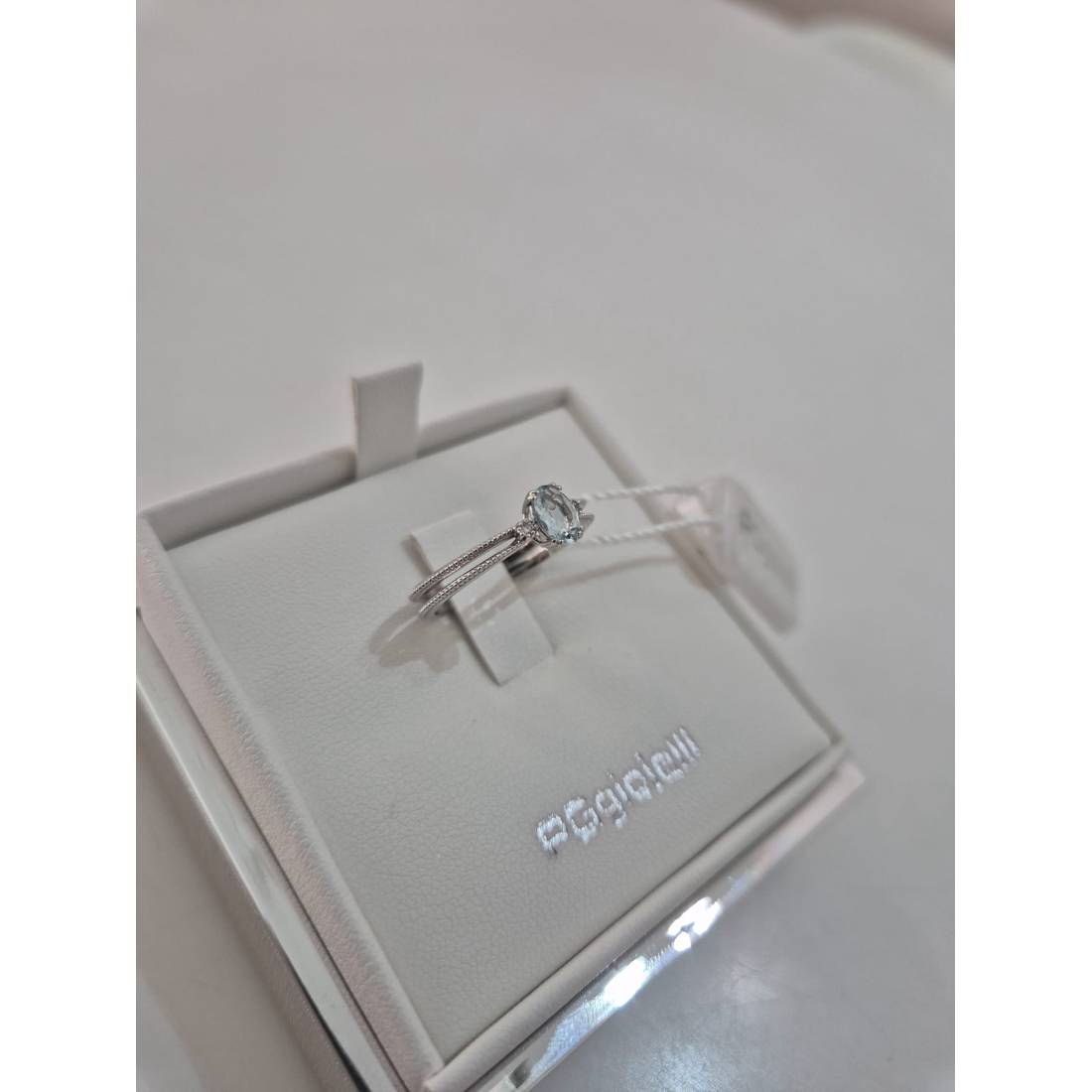 Anello con Acquamarina in oro bianco 18 kt e diamanti