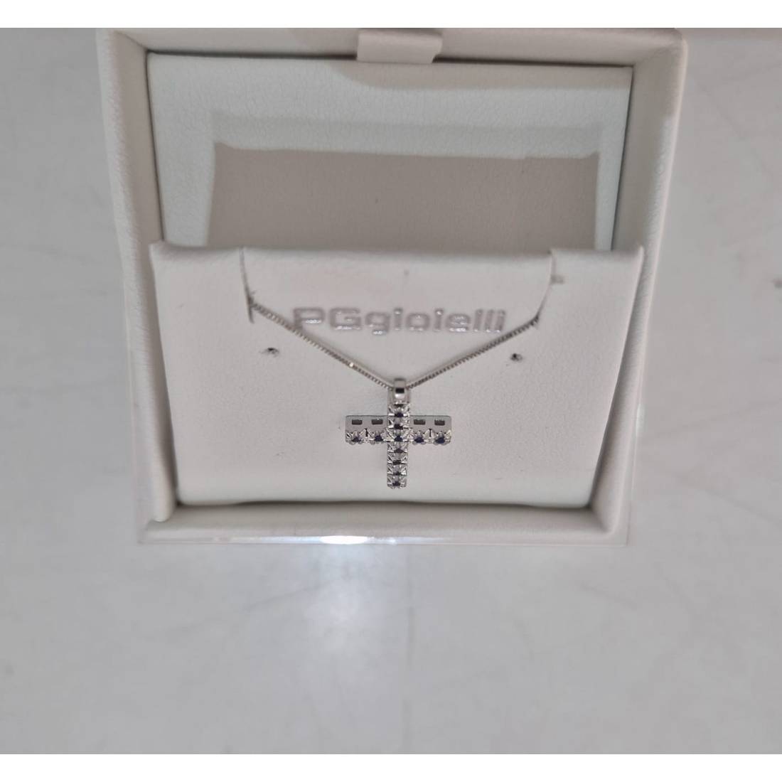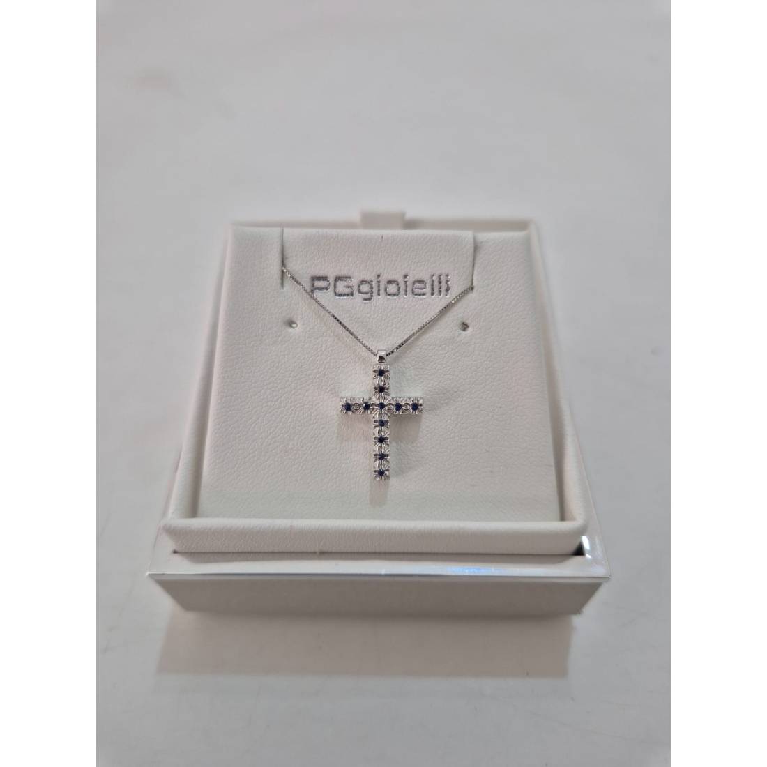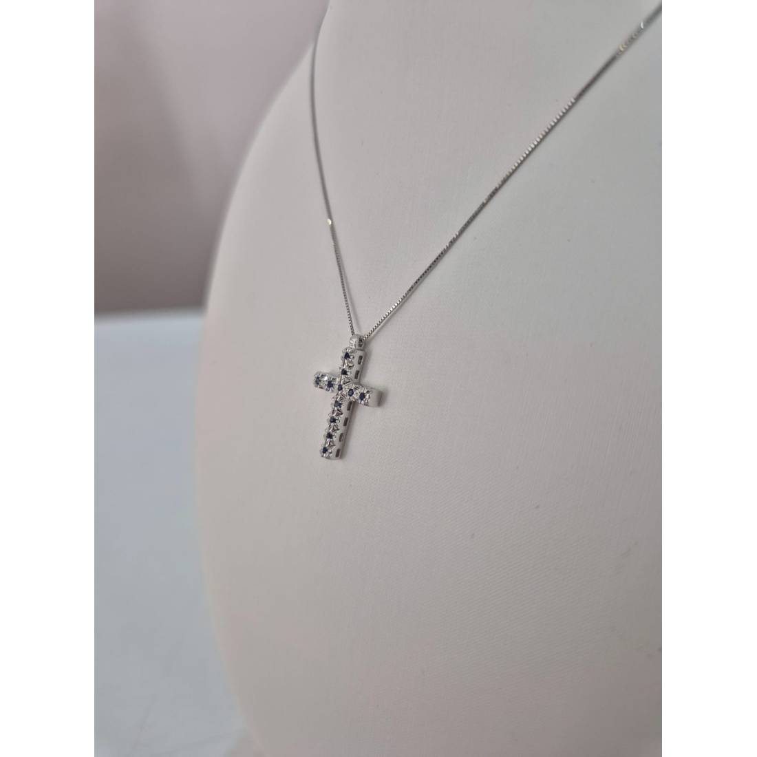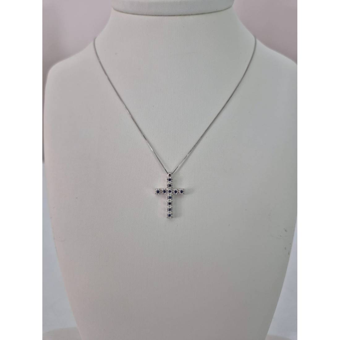 COLLANA CROCE con ZAFFIRI in oro bianco 18kt