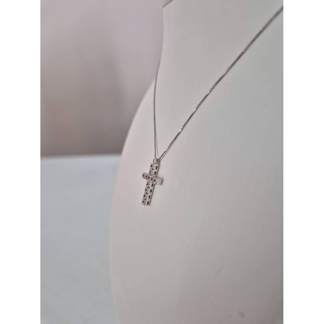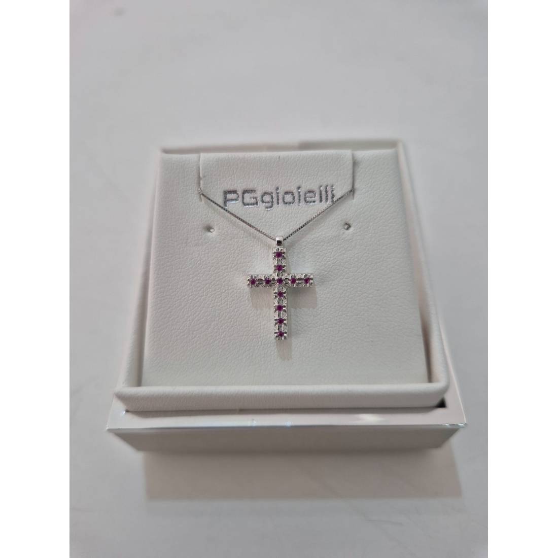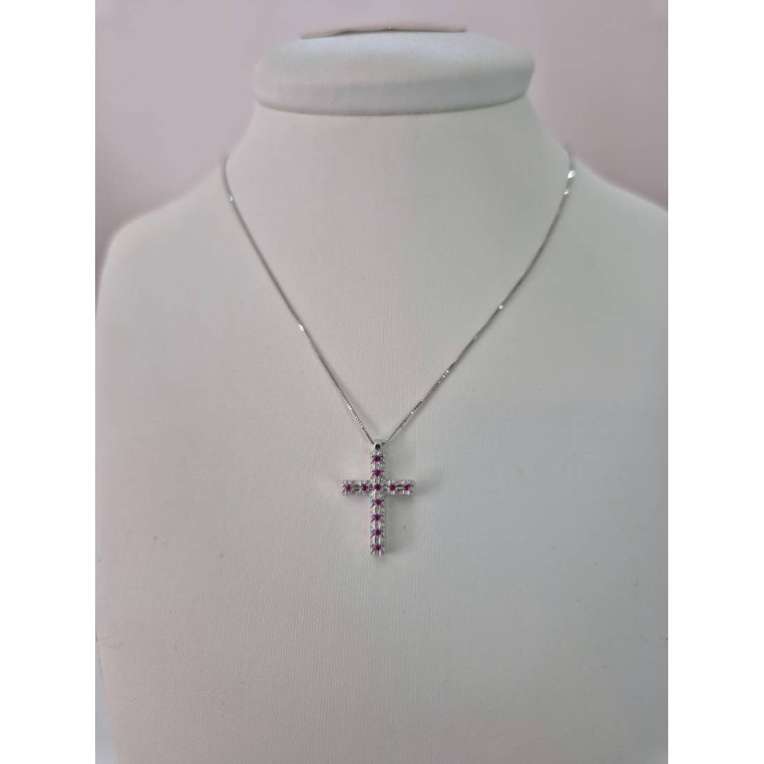 COLLANA CROCE con RUBINI in oro bianco 18kt