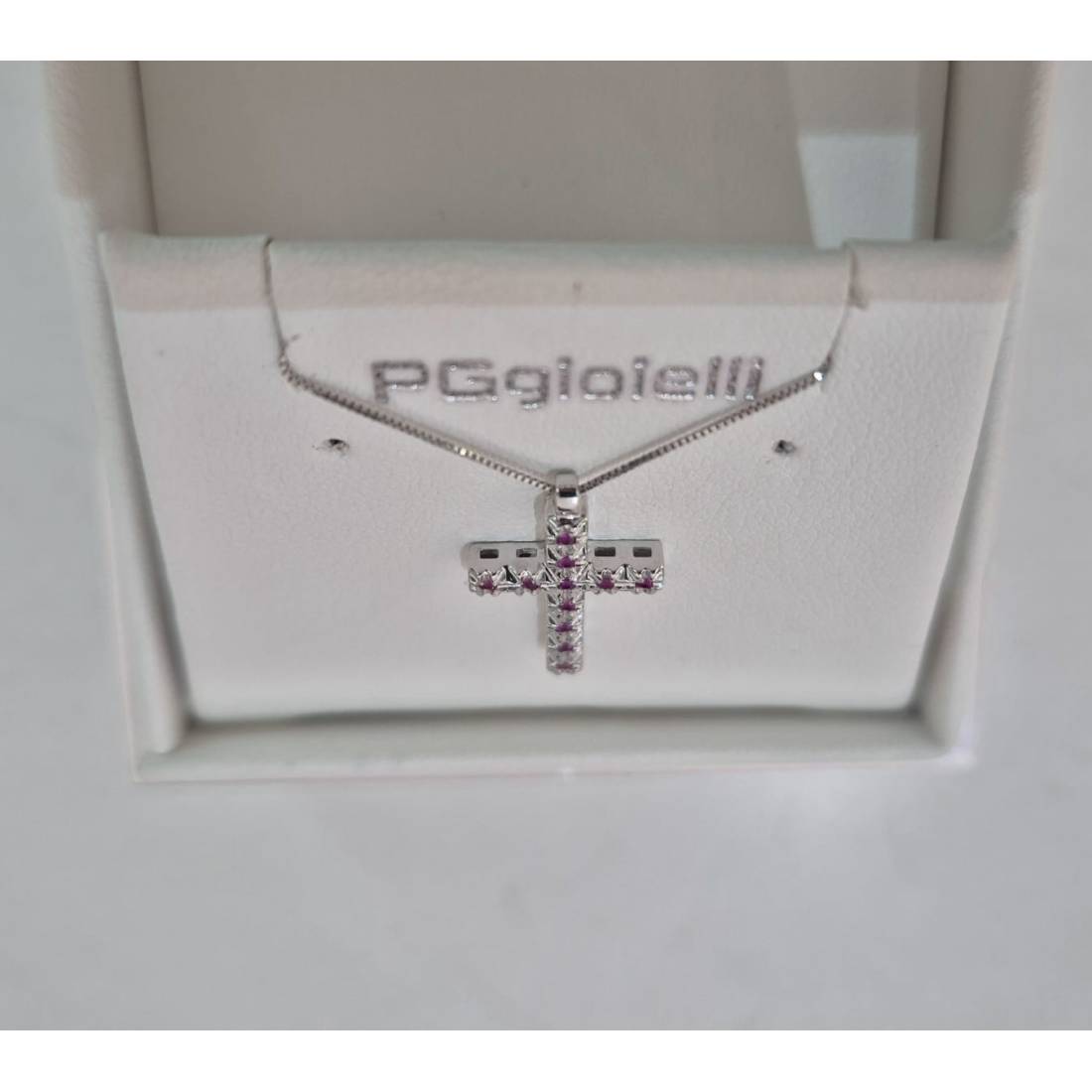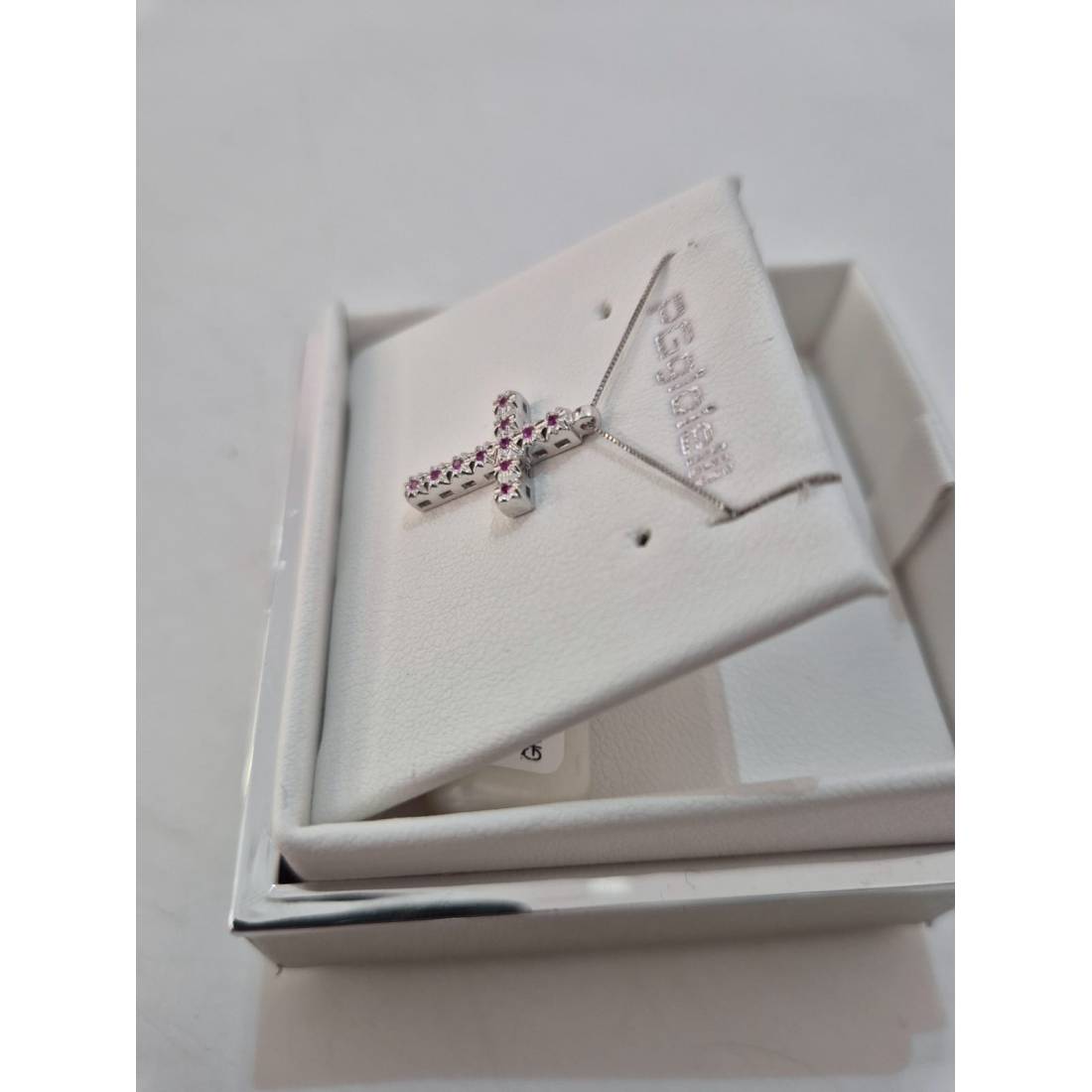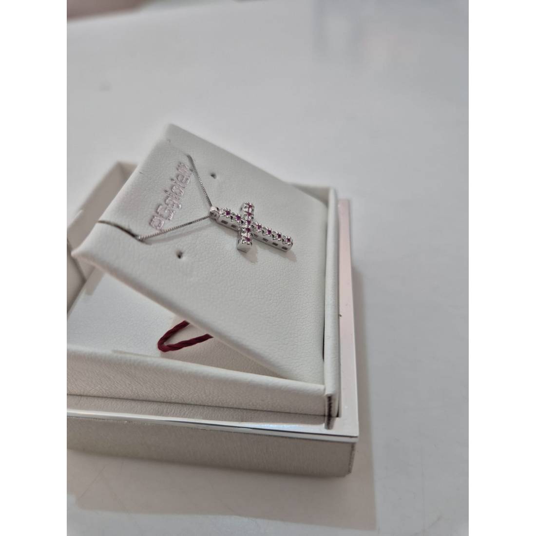 COLLANA CROCE con RUBINI in oro bianco 18kt