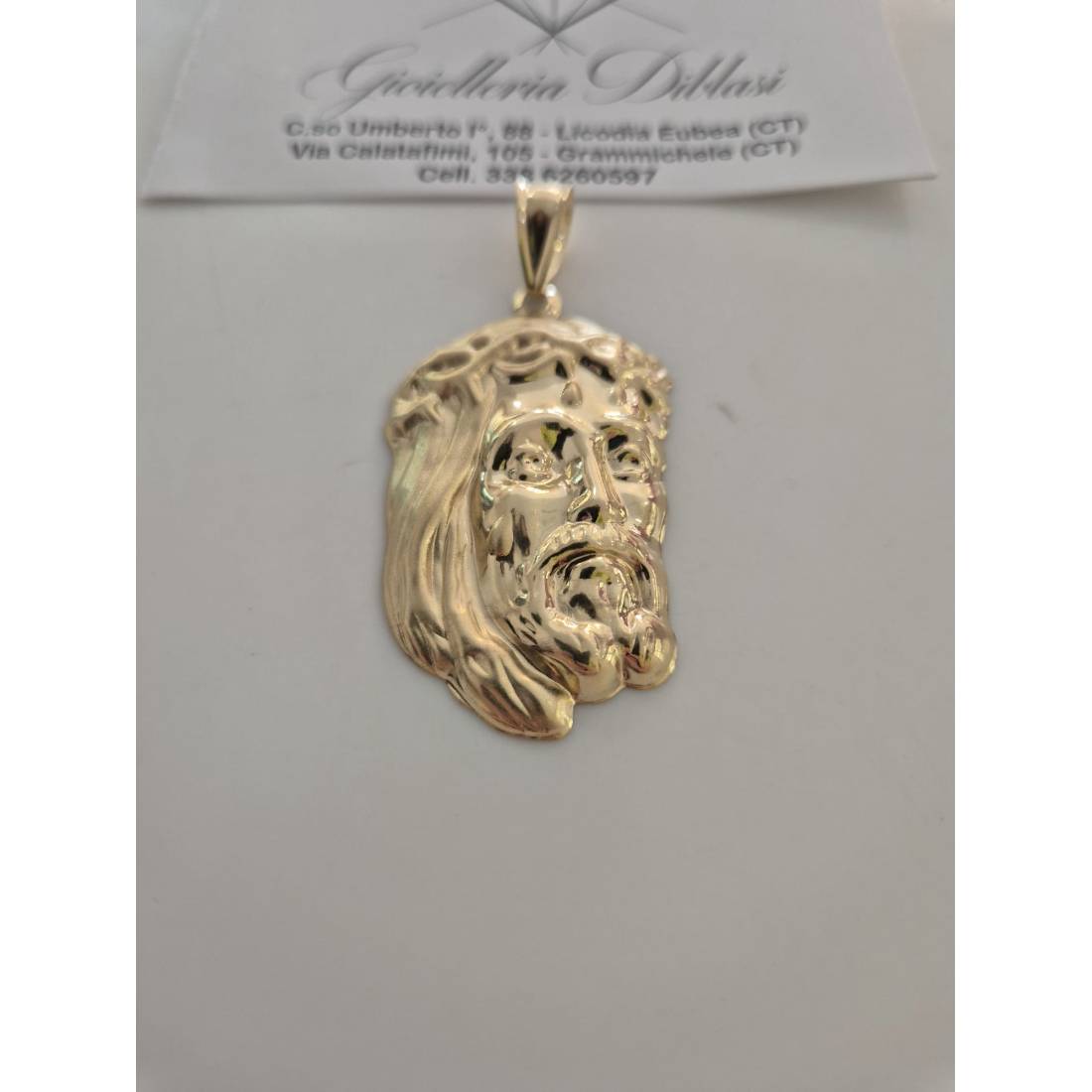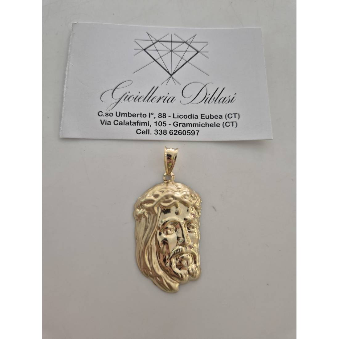 CIONDOLO Pendente MEDAGLIA VOLTO DI GESU' CRISTO ORO GIALLO 18 KARATI 750%/1000