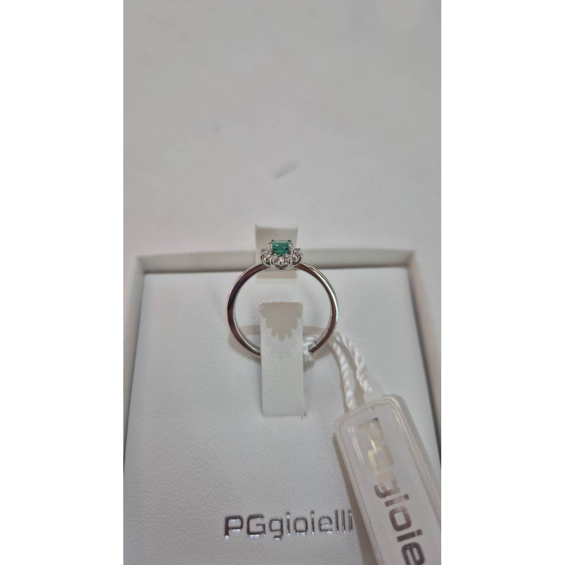Anello con Smeraldo in oro bianco 18 kt e diamanti