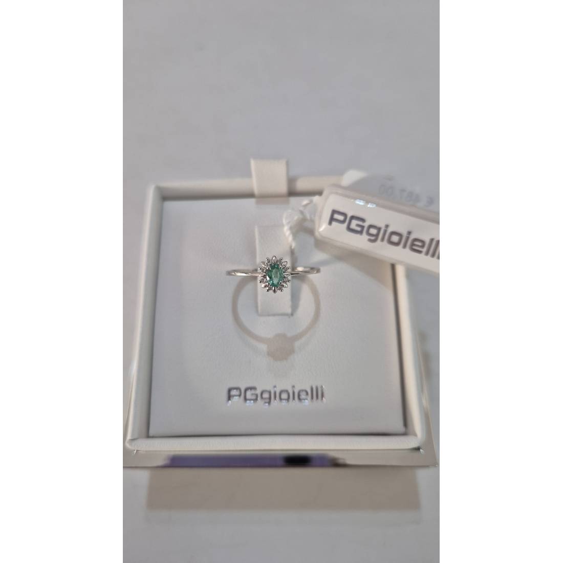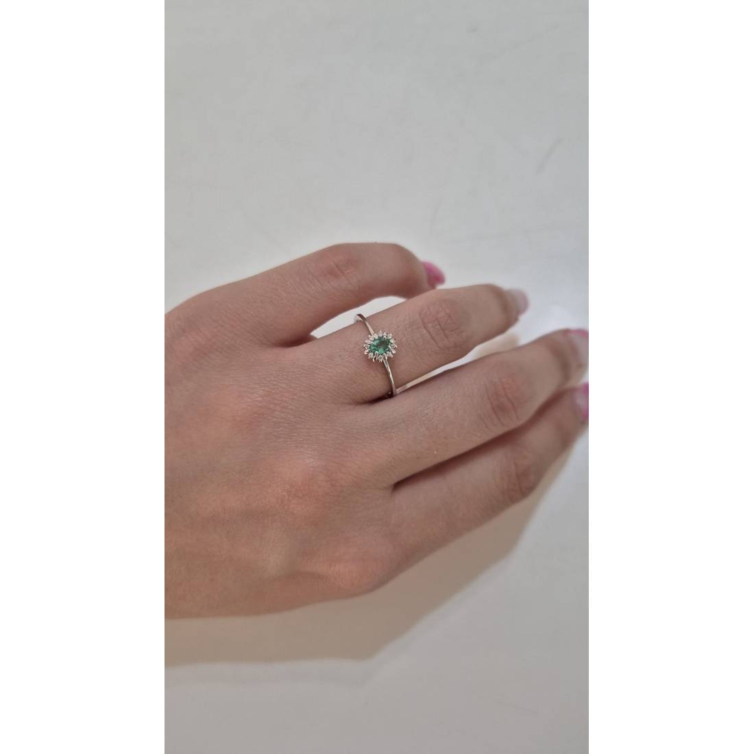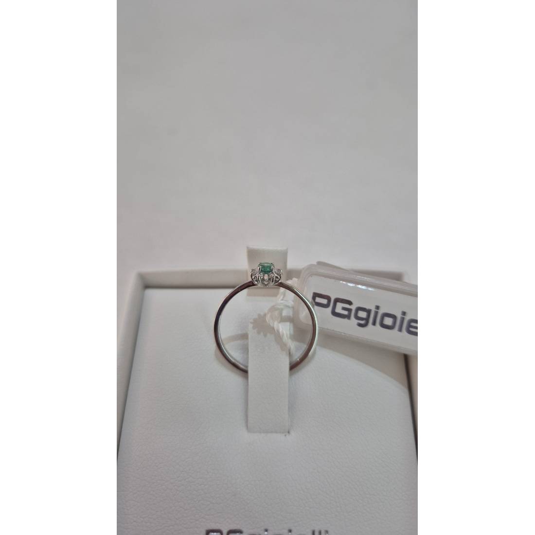 Anello con Smeraldo in oro bianco 18 kt e diamanti