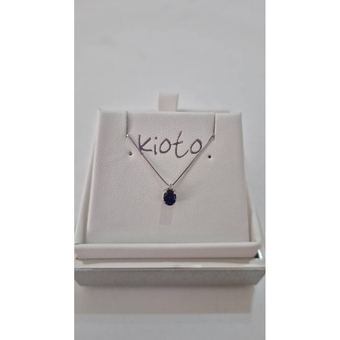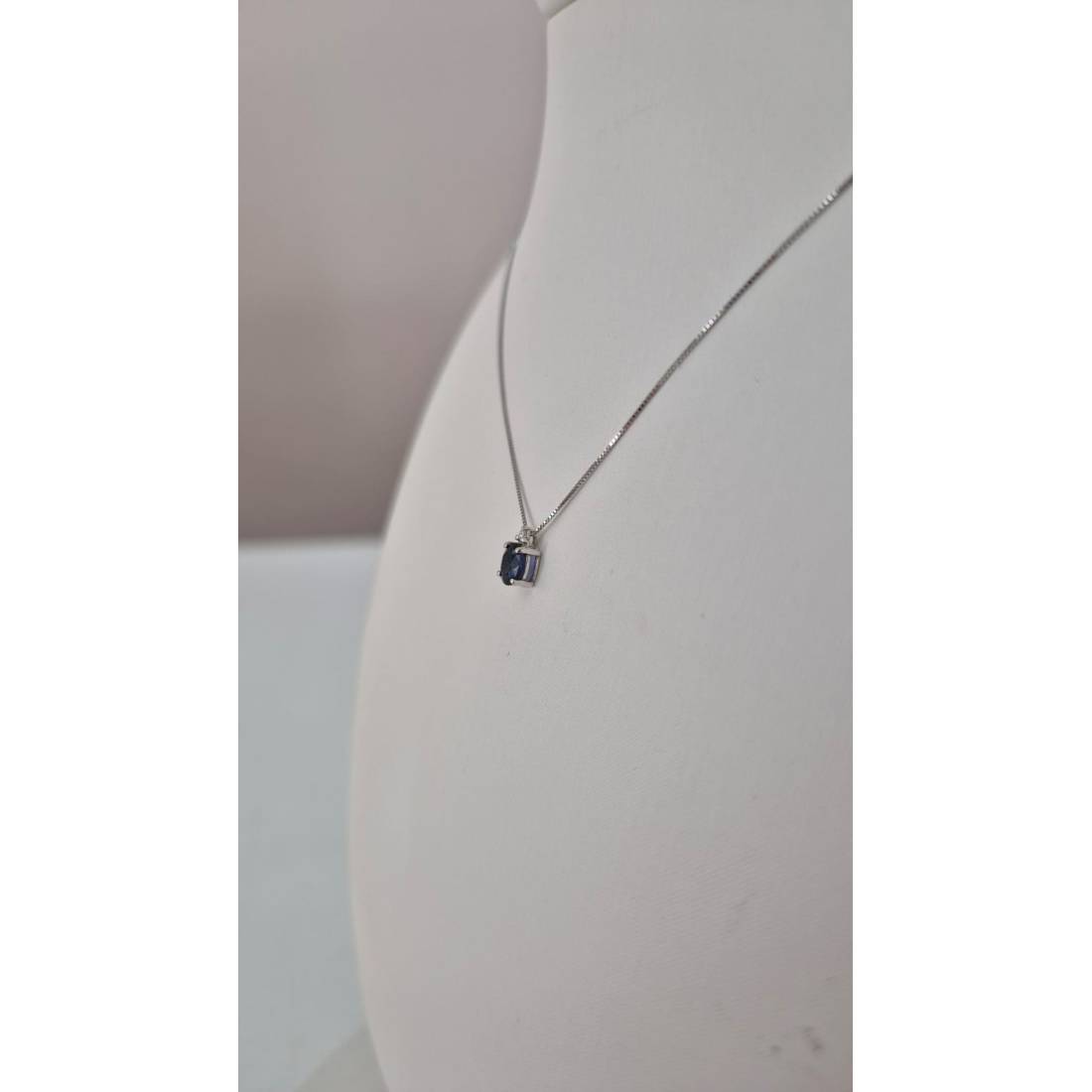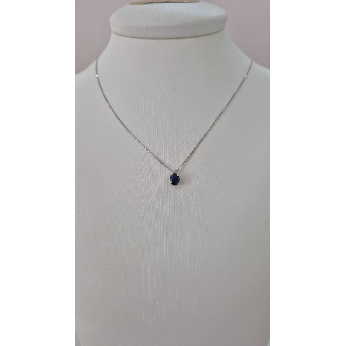 COLLANA con ZAFFIRO in oro bianco 9 kt e diamante