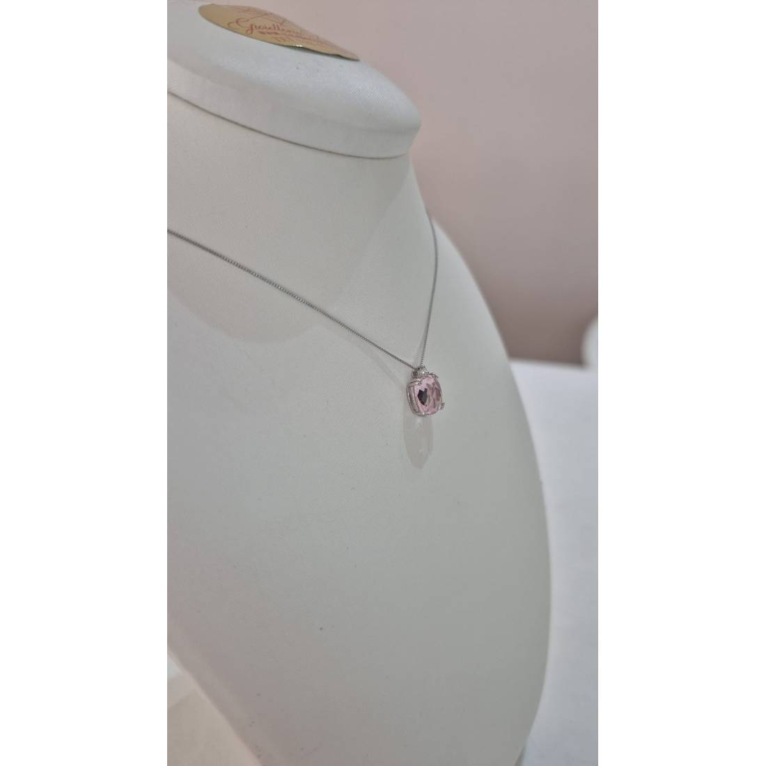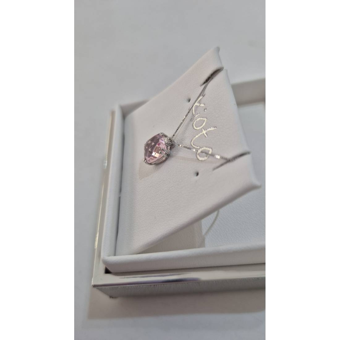 COLLANA con QUARZO ROSA in oro bianco 9 kt e diamante