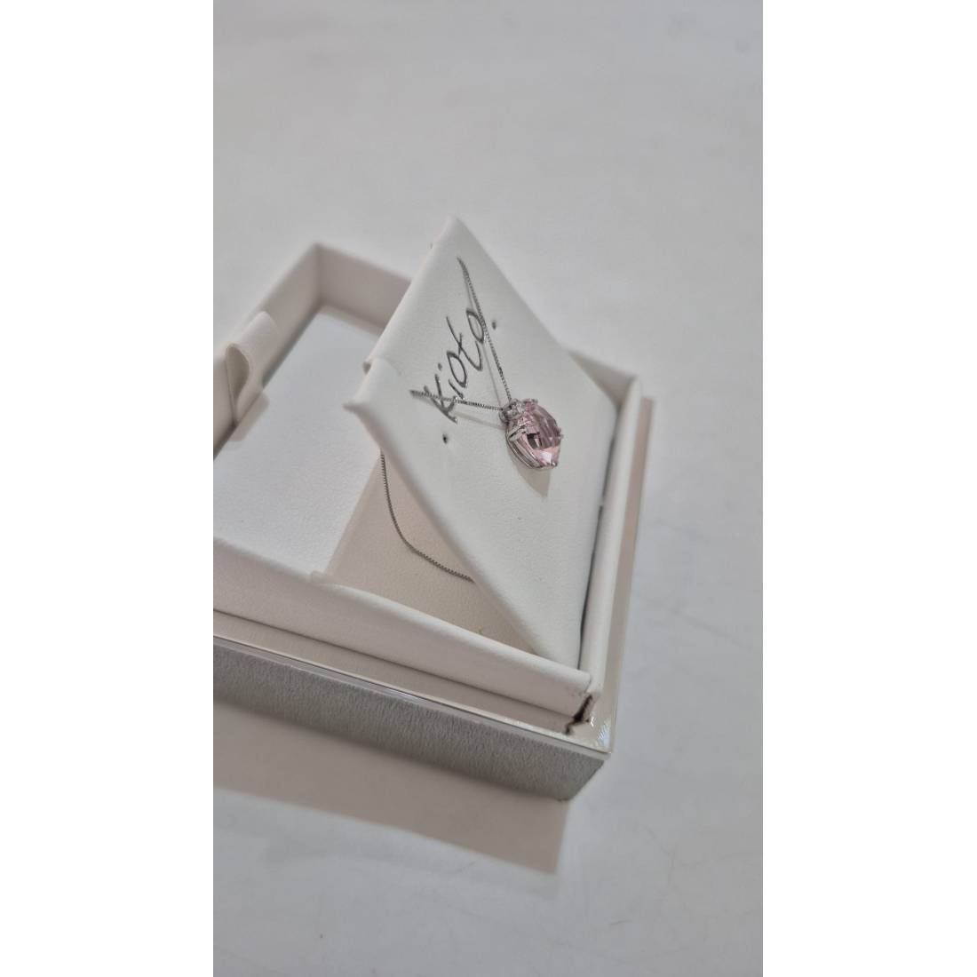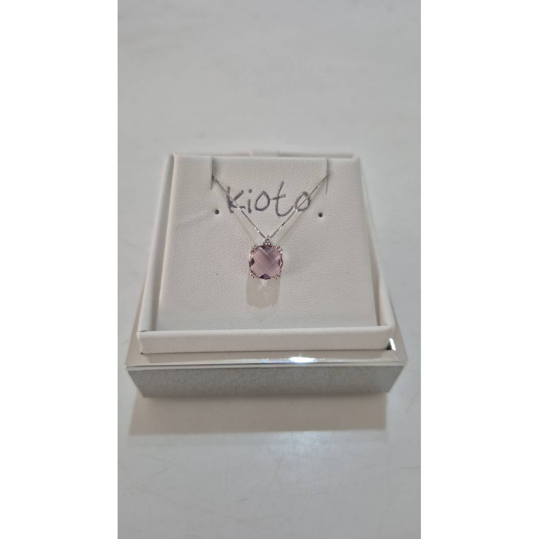 COLLANA KIOTO QUARZO ROSA E DIAMANTE Oro Bianco 9 Karati 375% Catena Veneziana