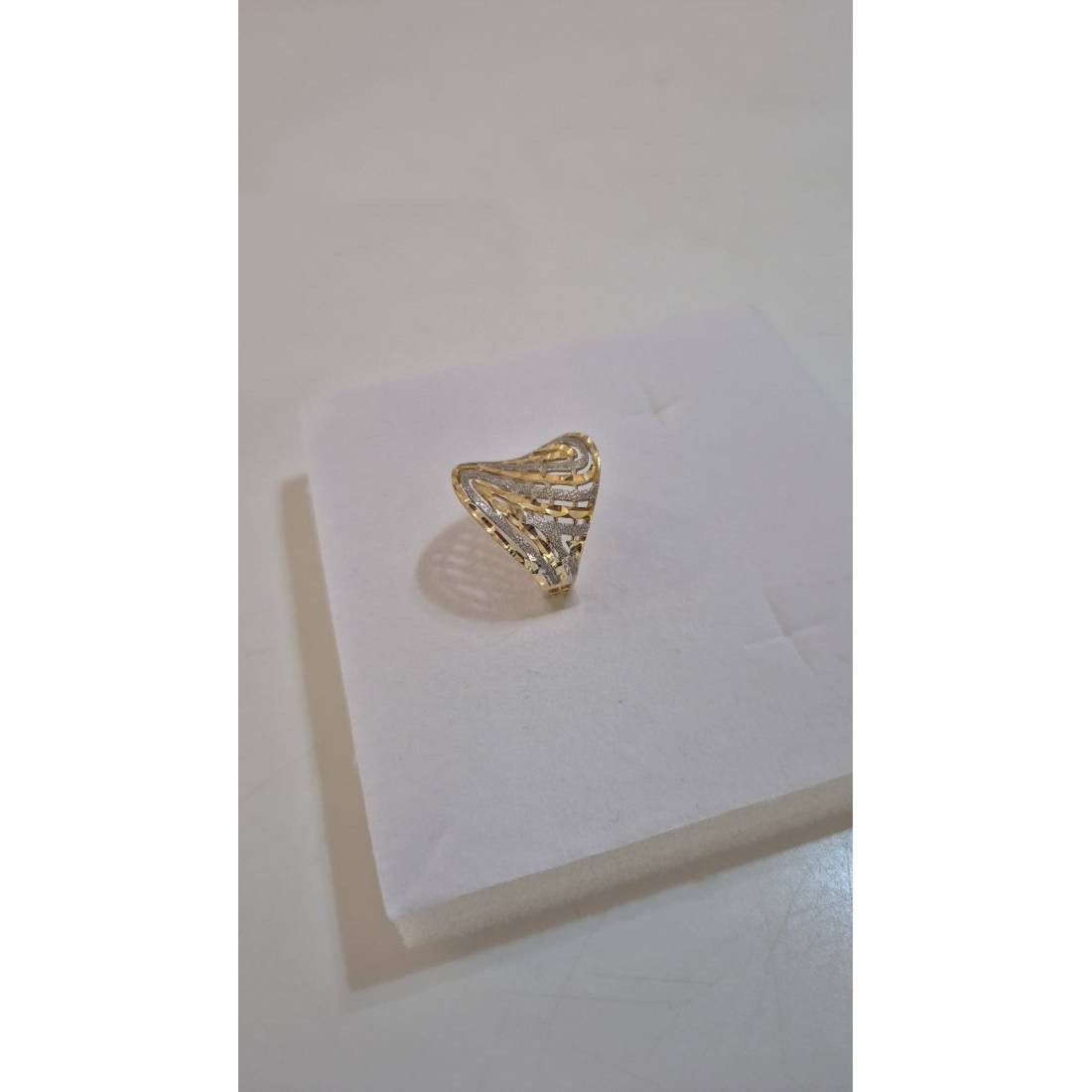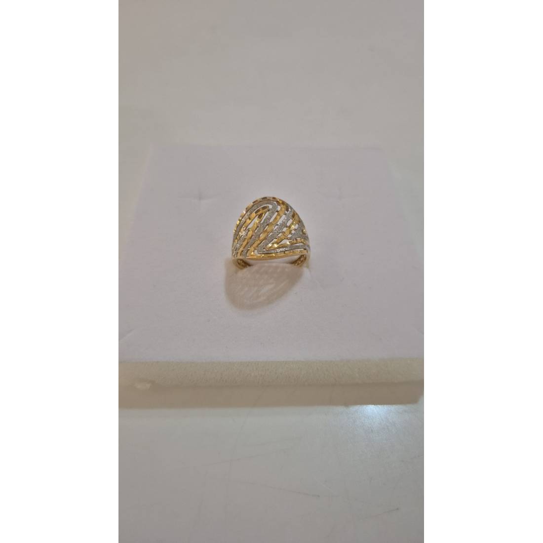 ANELLO Donna ORO Bicolore 18 Karati 750% GIALLO E BIANCO Lavorato E Sfaccettato