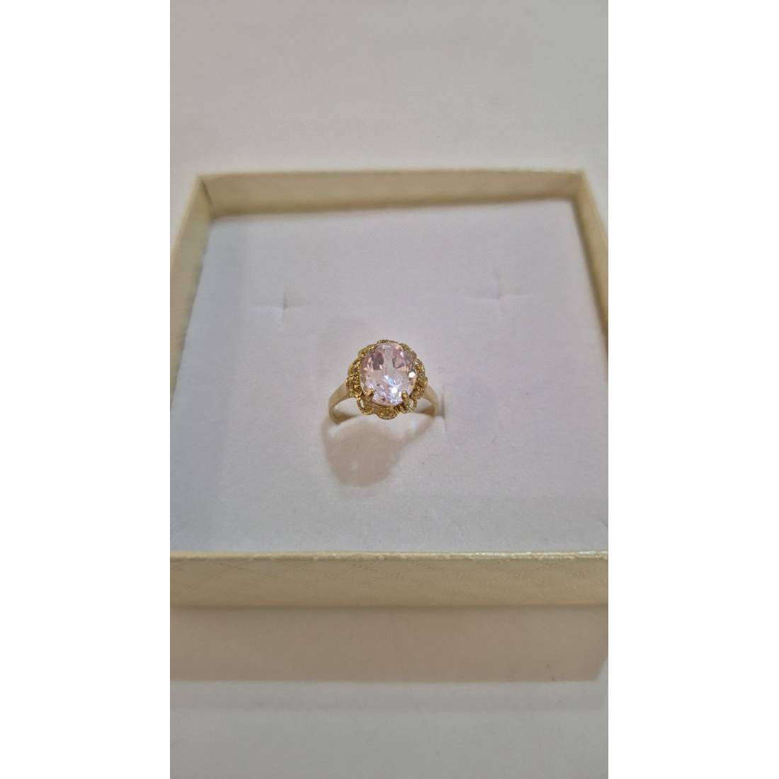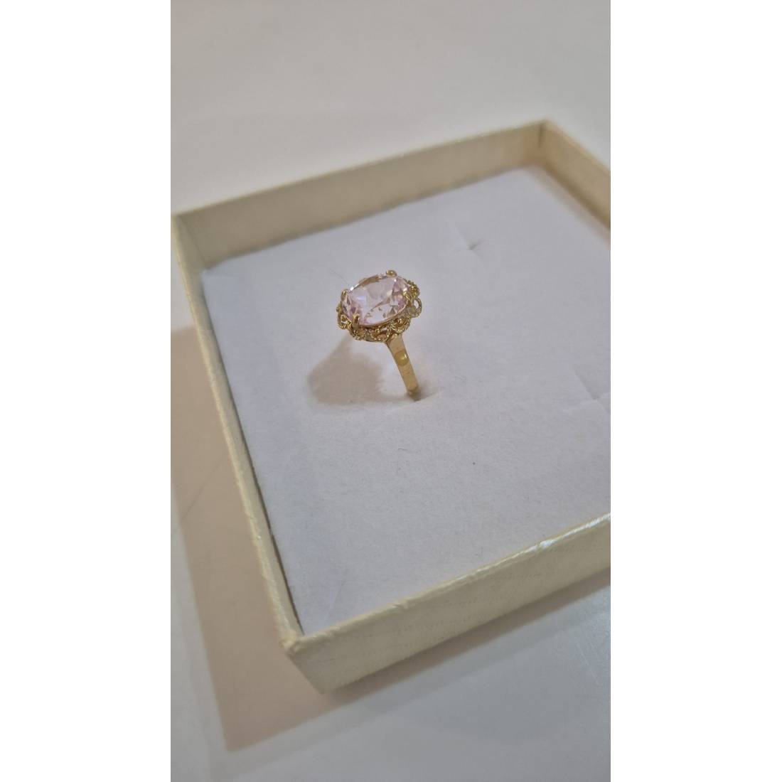ANELLO Donna ORO GIALLO 18 Karati 750% Lavorato Fiore Con Zircone Rosa Centrale