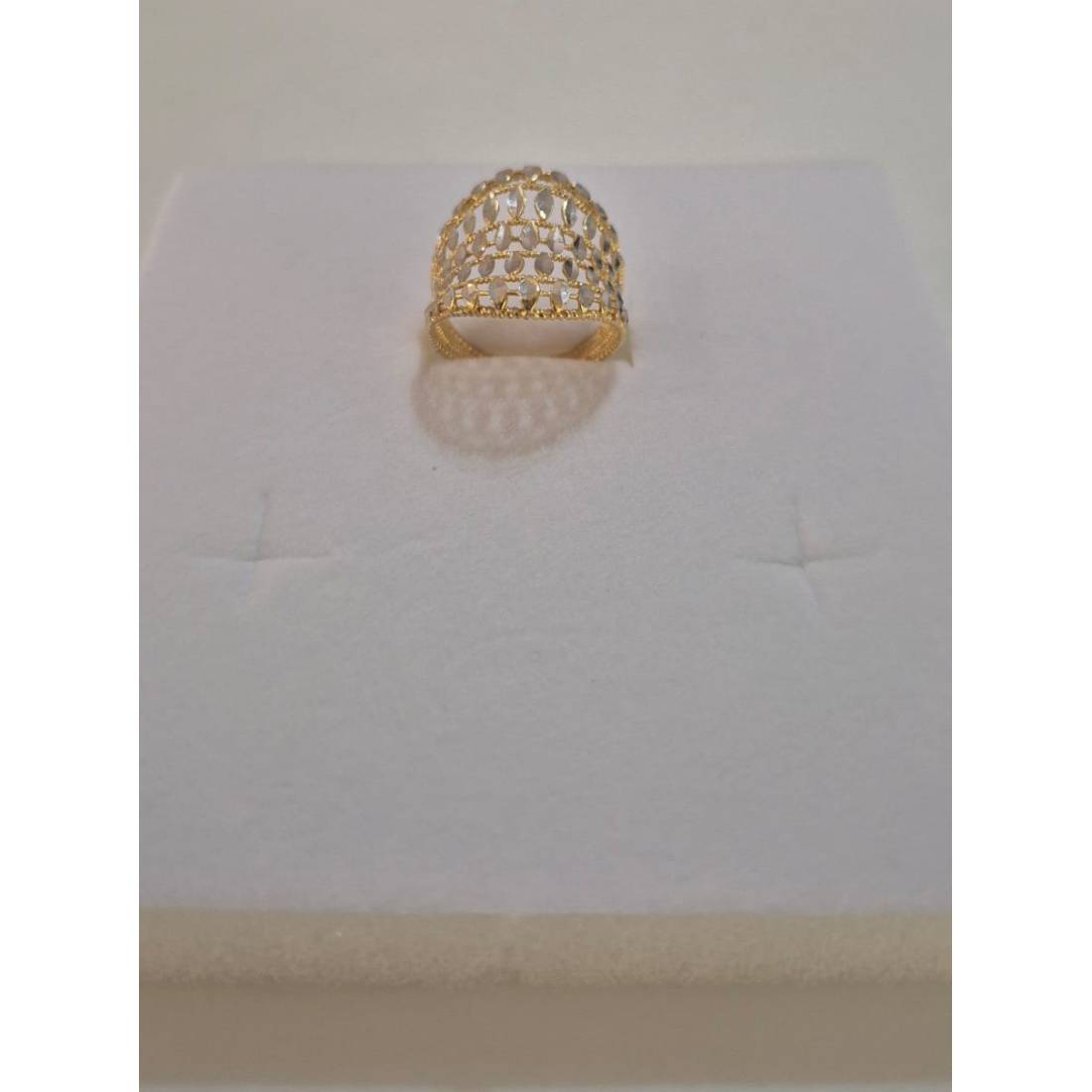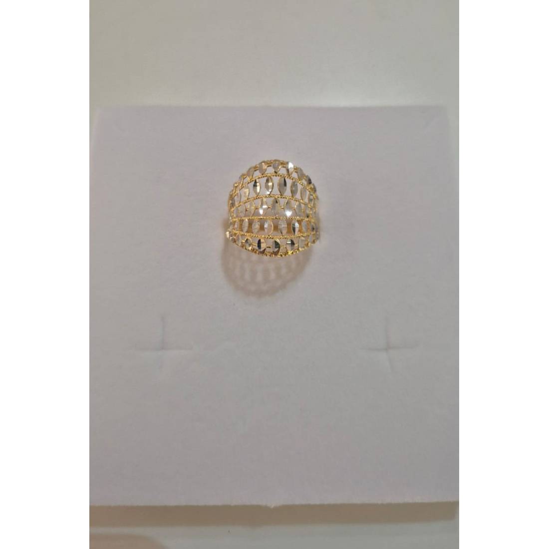 ANELLO Donna ORO Bicolore 18 Karati 750% GIALLO E BIANCO Lavorato E Sfaccettato