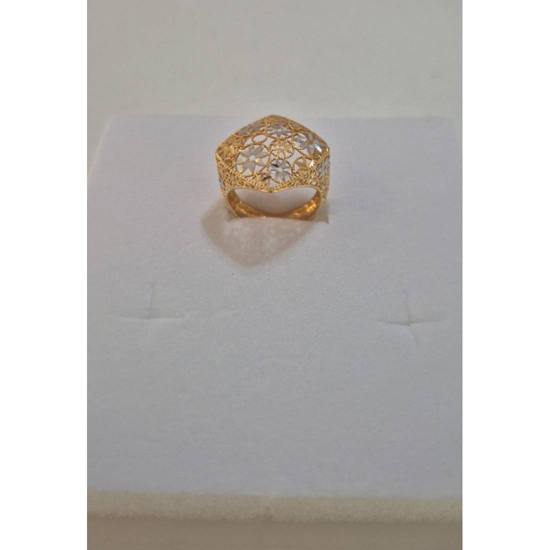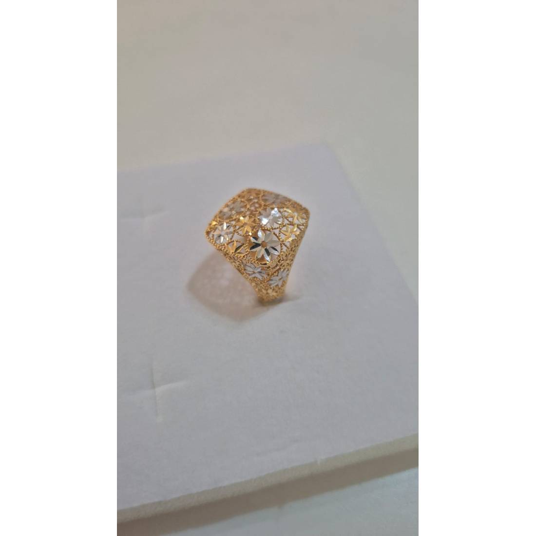 ANELLO Donna ORO Bicolore 18 Karati 750% GIALLO E BIANCO Lavorato E Sfaccettato