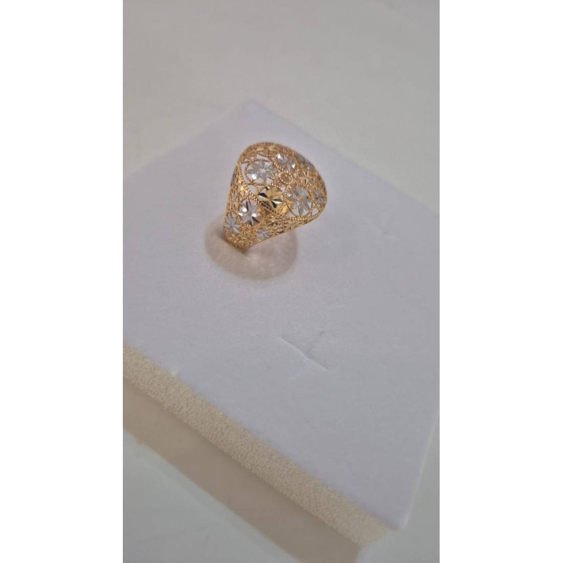 ANELLO Da Donna In ORO Bicolore 18 Karati 750% GIALLO E BIANCO Tondo Sfaccettato