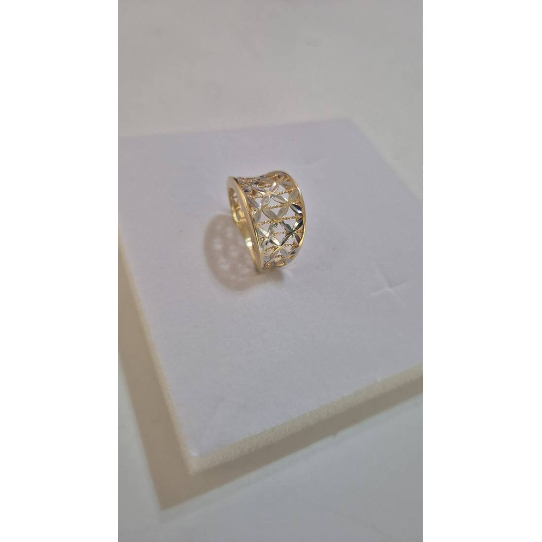 ANELLO Donna ORO Bicolore 18 Karati 750% GIALLO E BIANCO Lavorato E Sfaccettato
