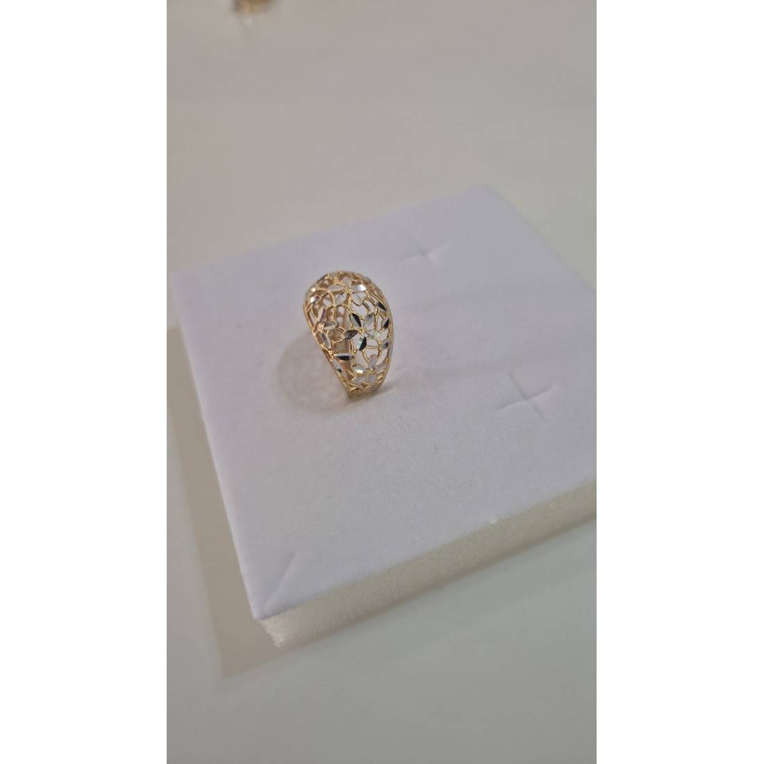 ANELLO Donna ORO Bicolore 18 Karati 750% GIALLO E BIANCO Sfaccettato Diamantato