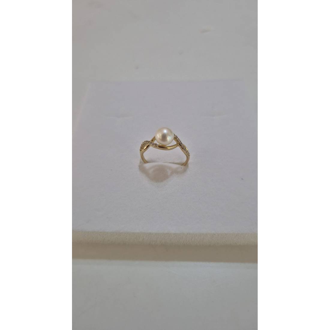 ANELLO Con PERLA Bianca Di Acqua Dolce In ORO GIALLO 18 Karati 750% Con Zirconi