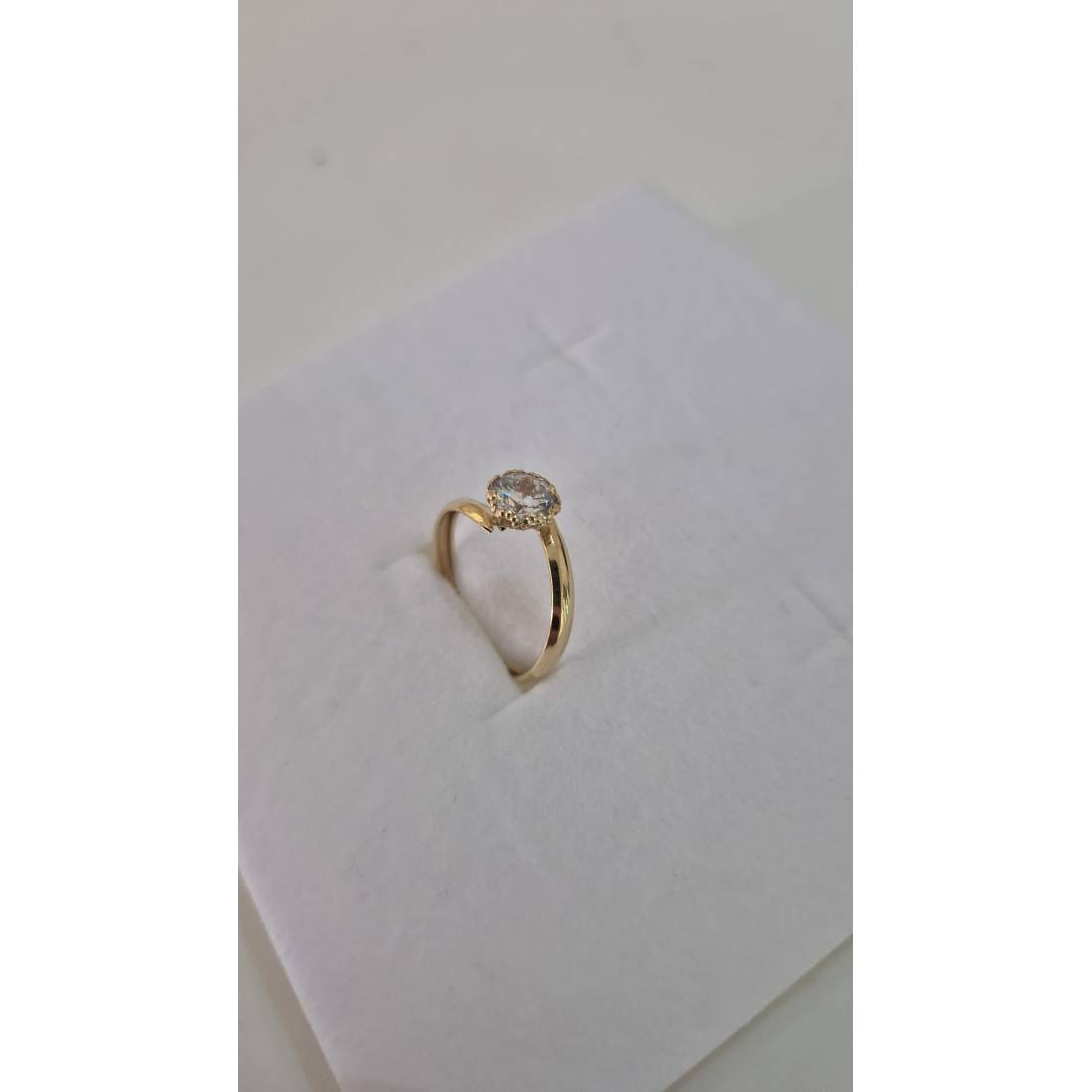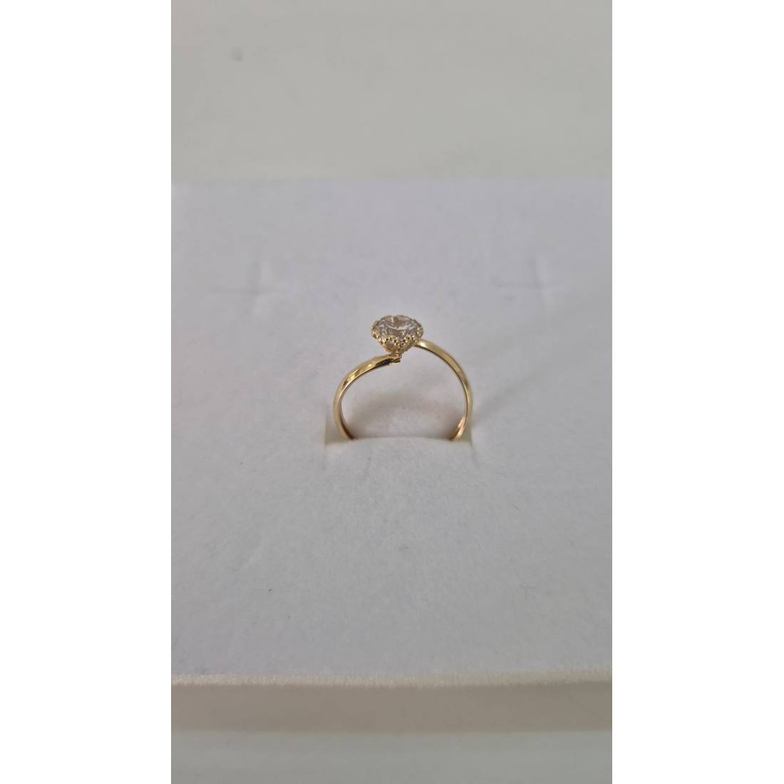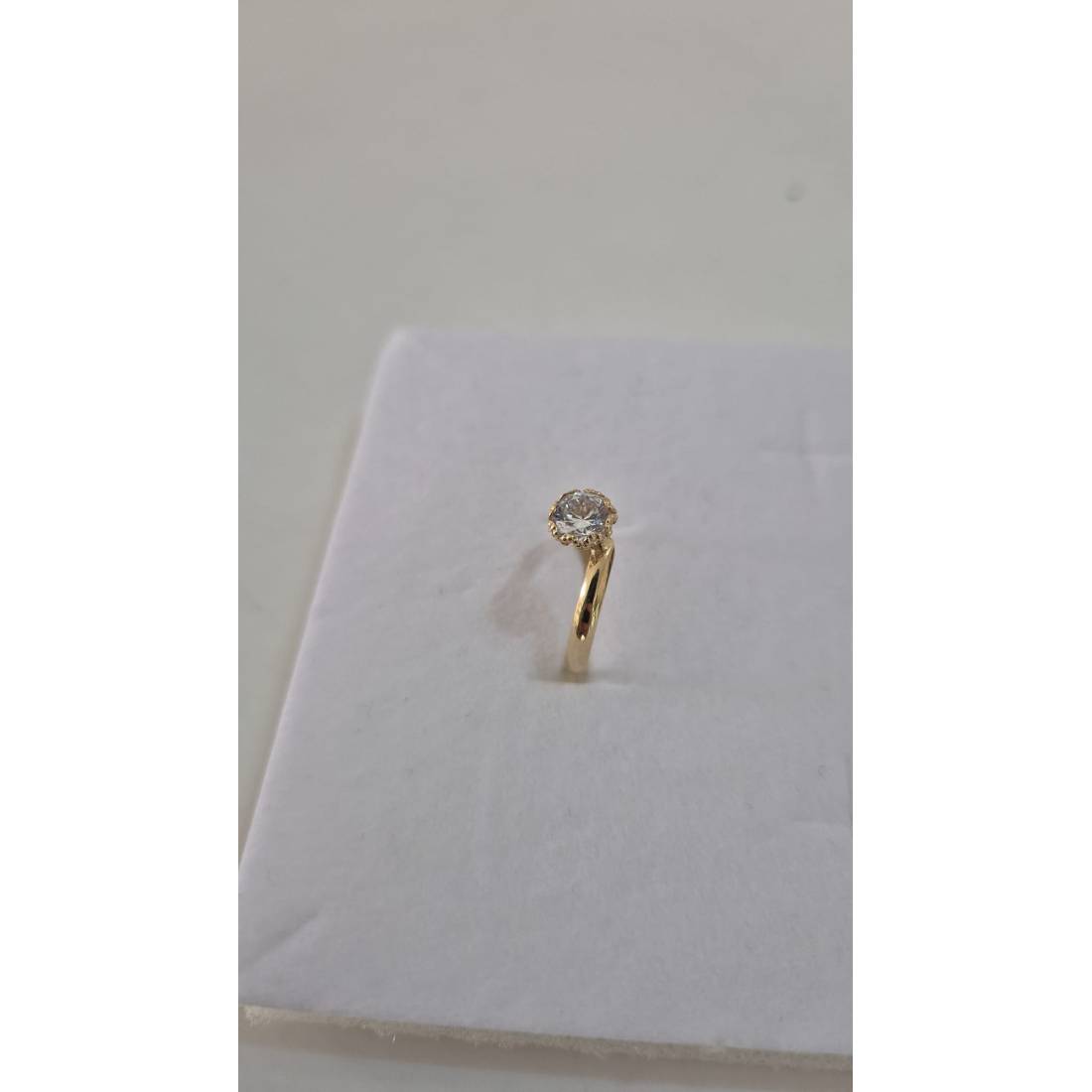ANELLO Donna ORO GIALLO 18 Karati 750% Con Zircone Bianco Centrale Tondo A Fiore