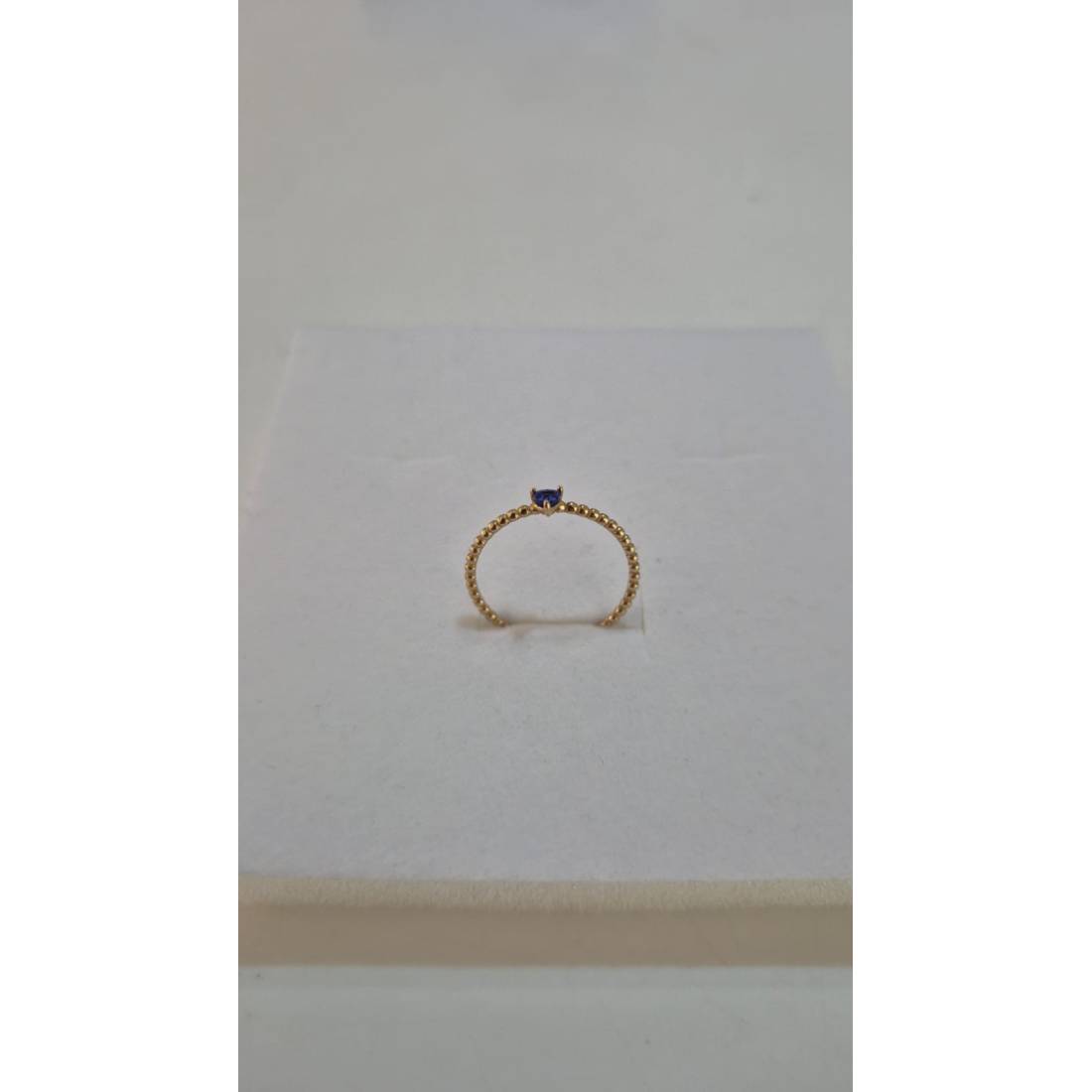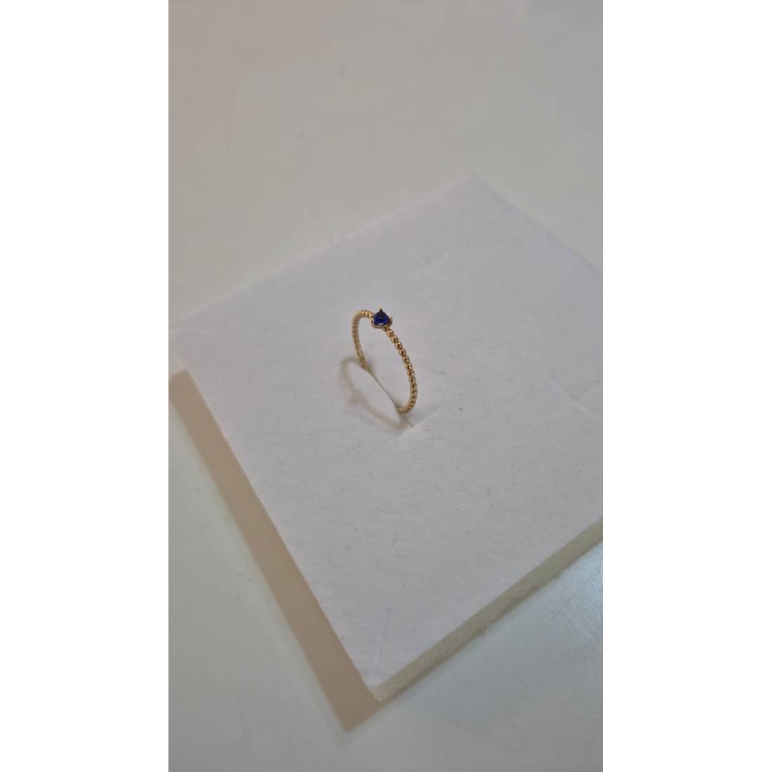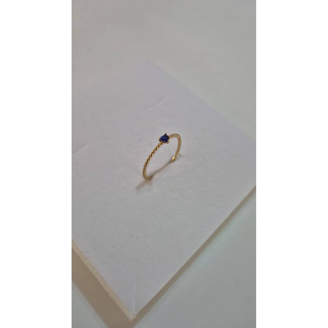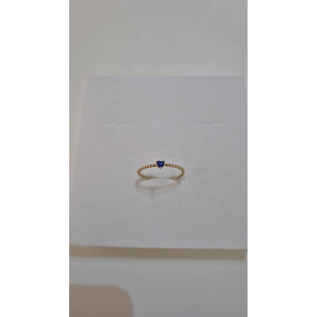 ANELLO Donna ORO GIALLO 18 Karati 750% Con Zircone Blu Centrale Cuore E Sfere