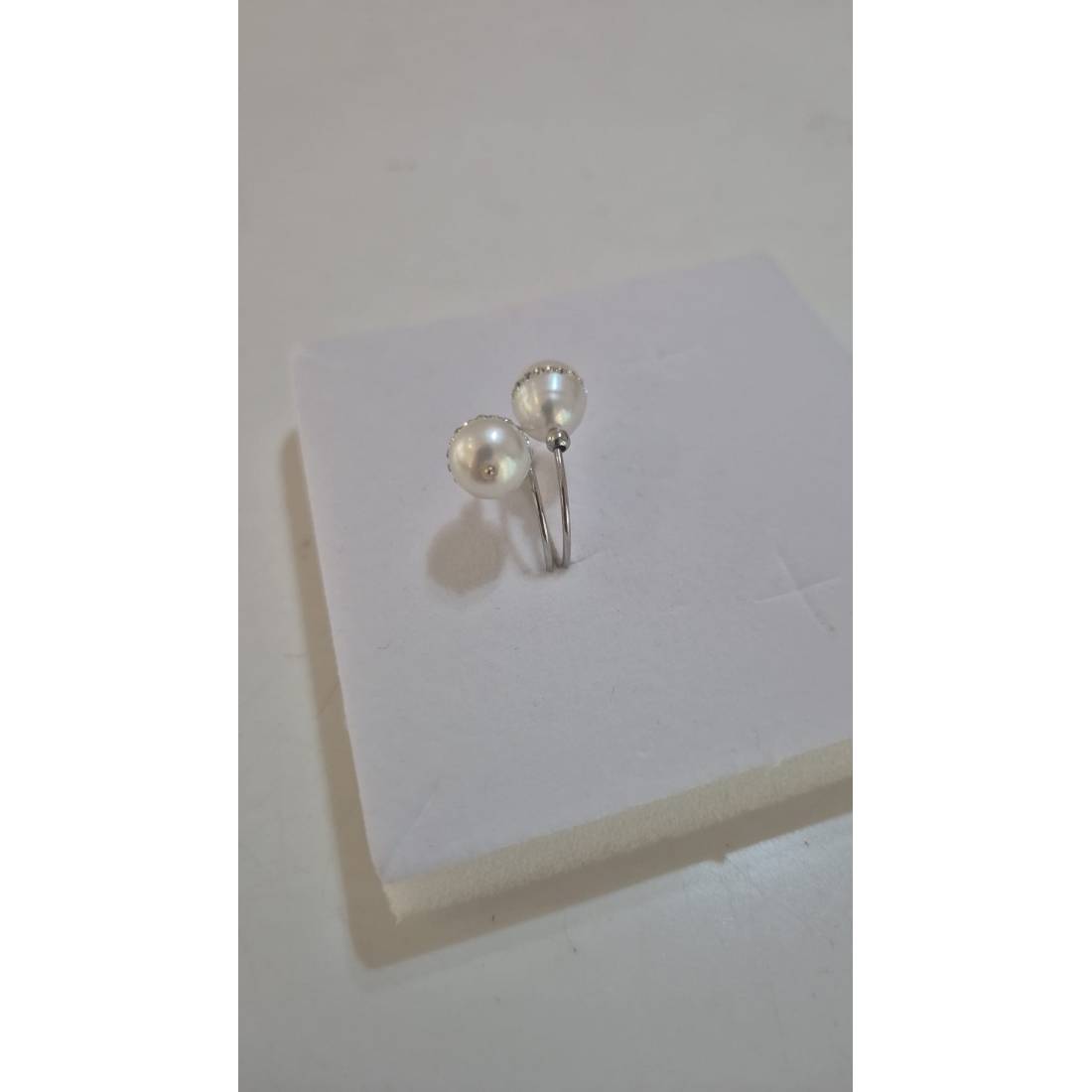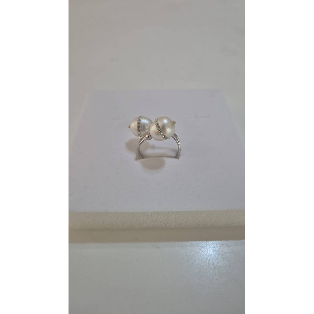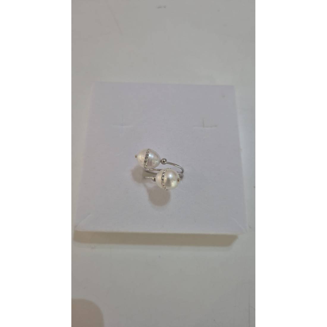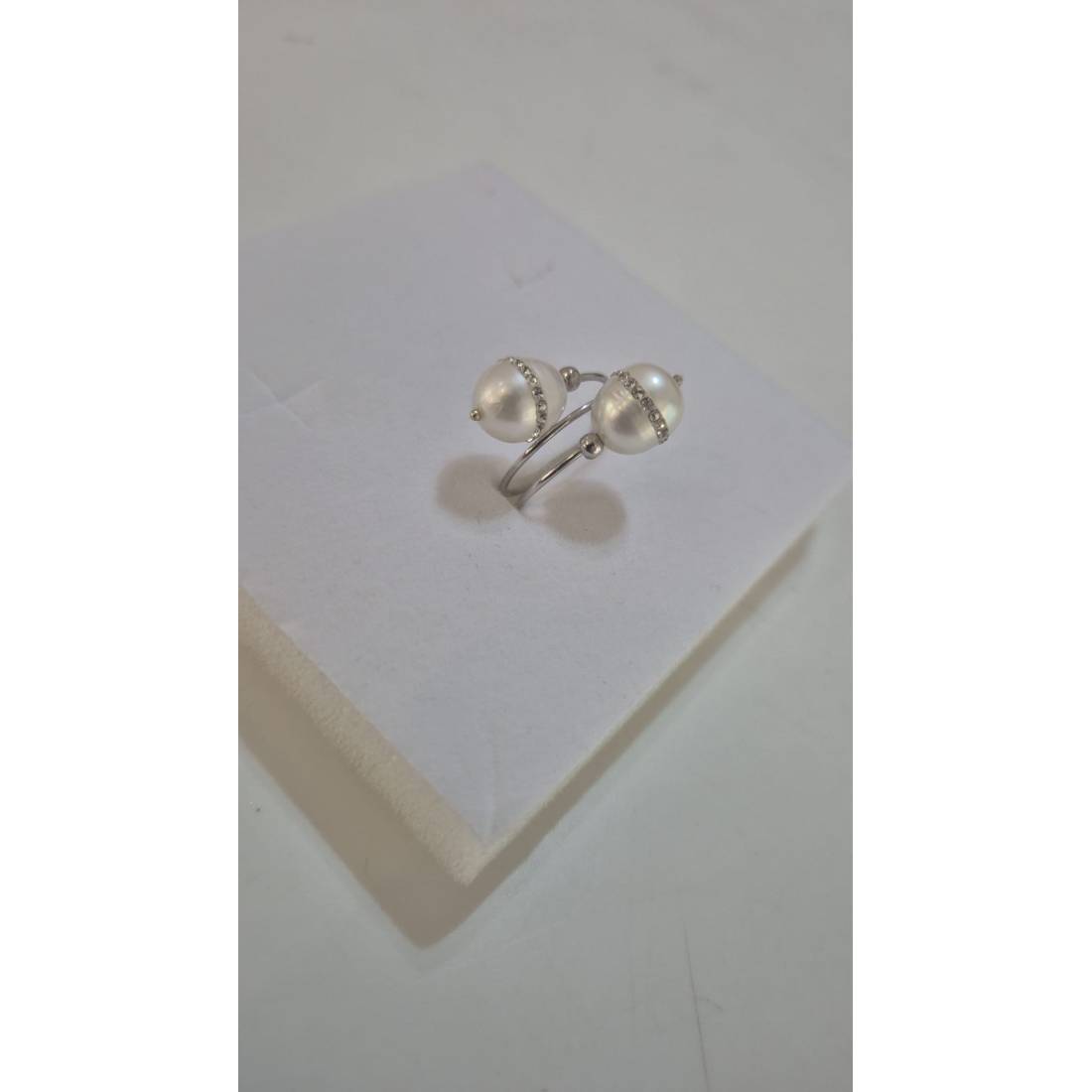 ANELLO Da Donna In ORO BIANCO 18 Karati 750% Con Due Perle Acqua Dolce E Zirconi