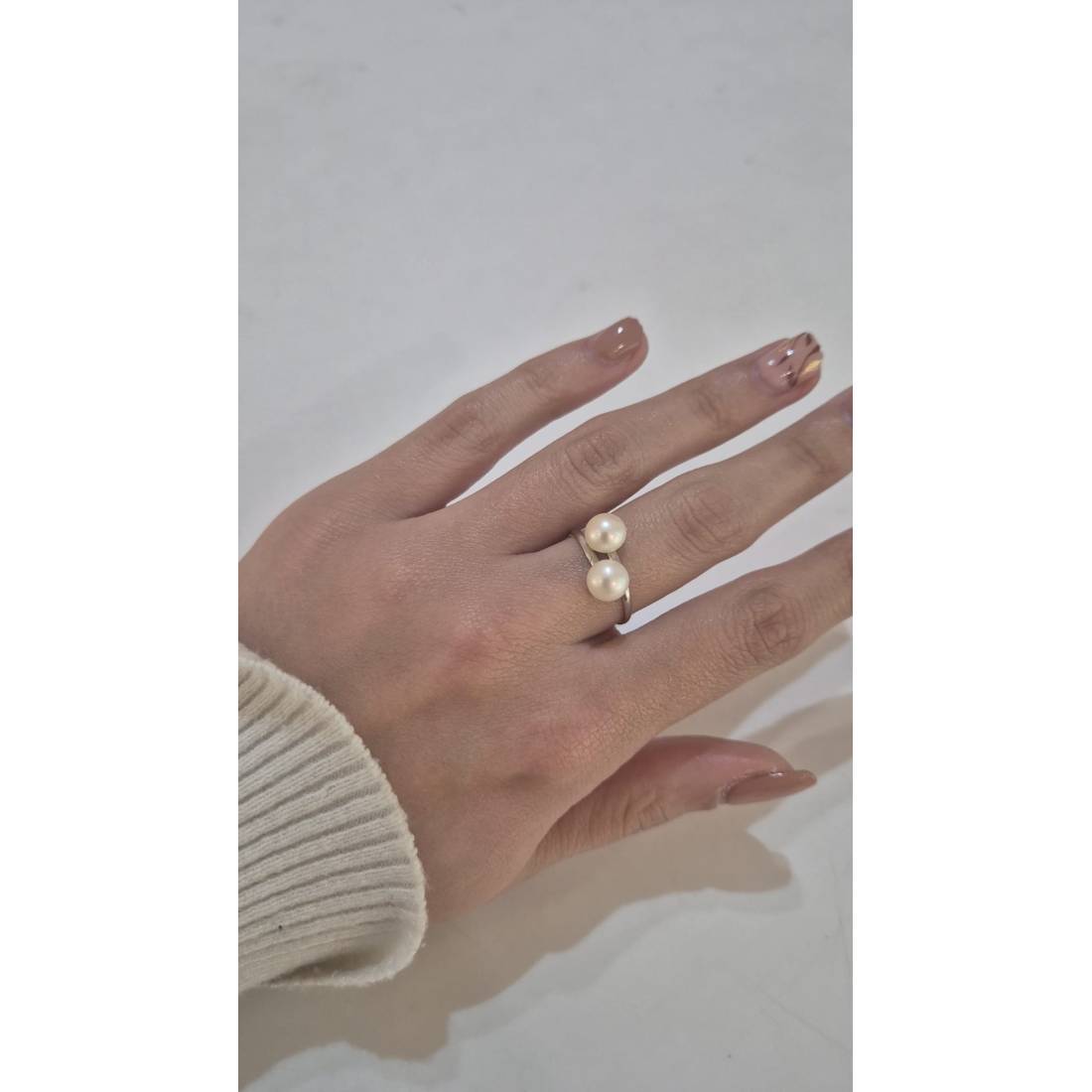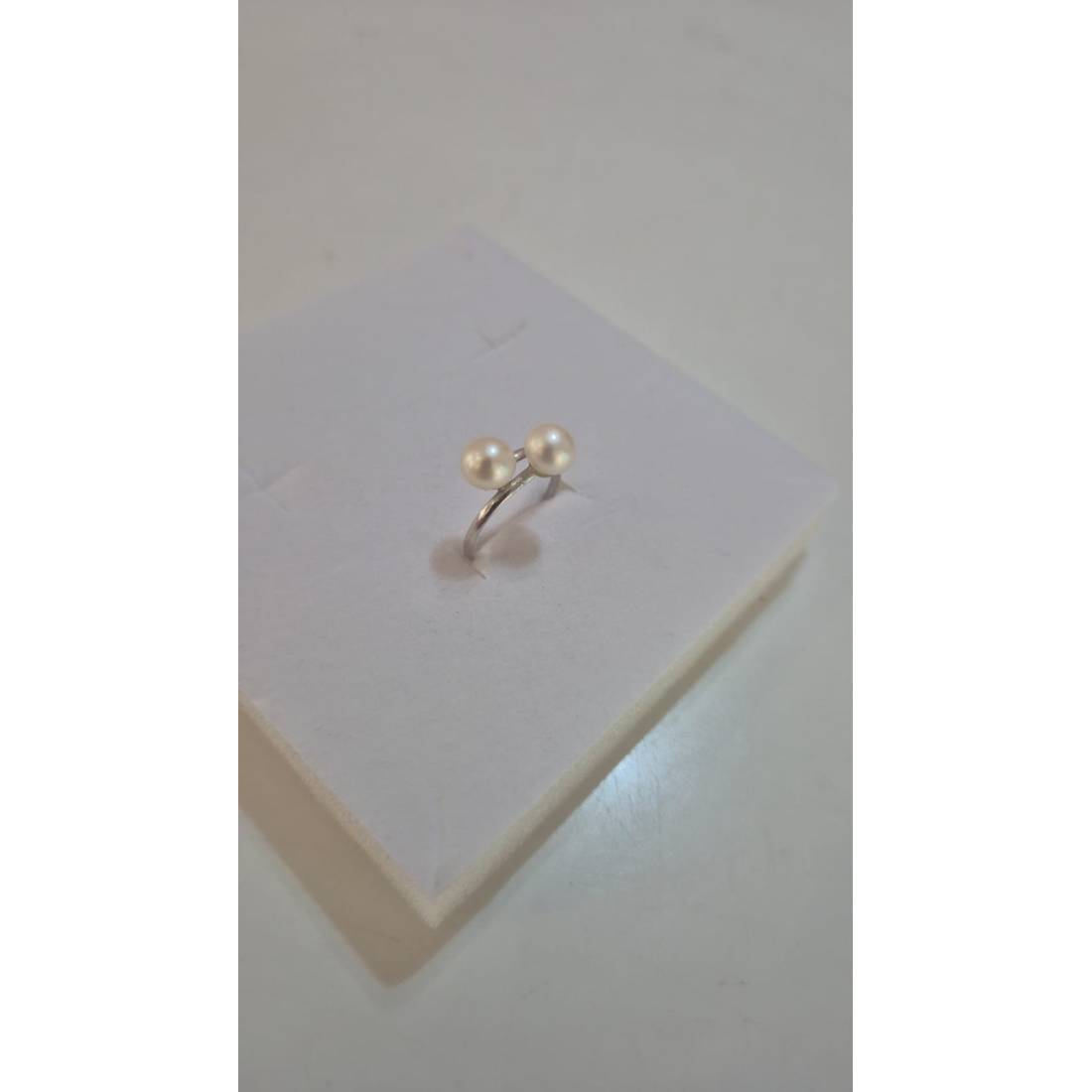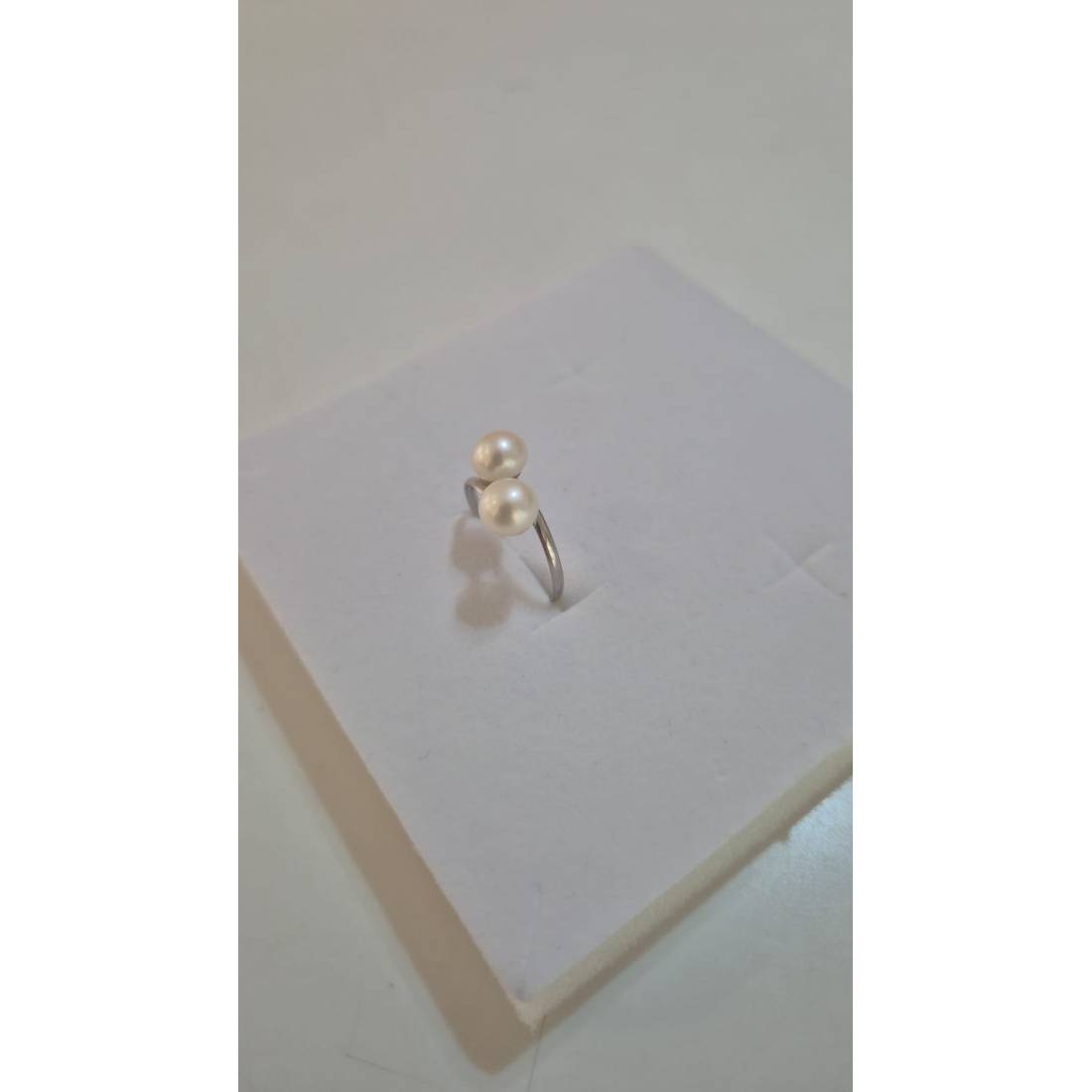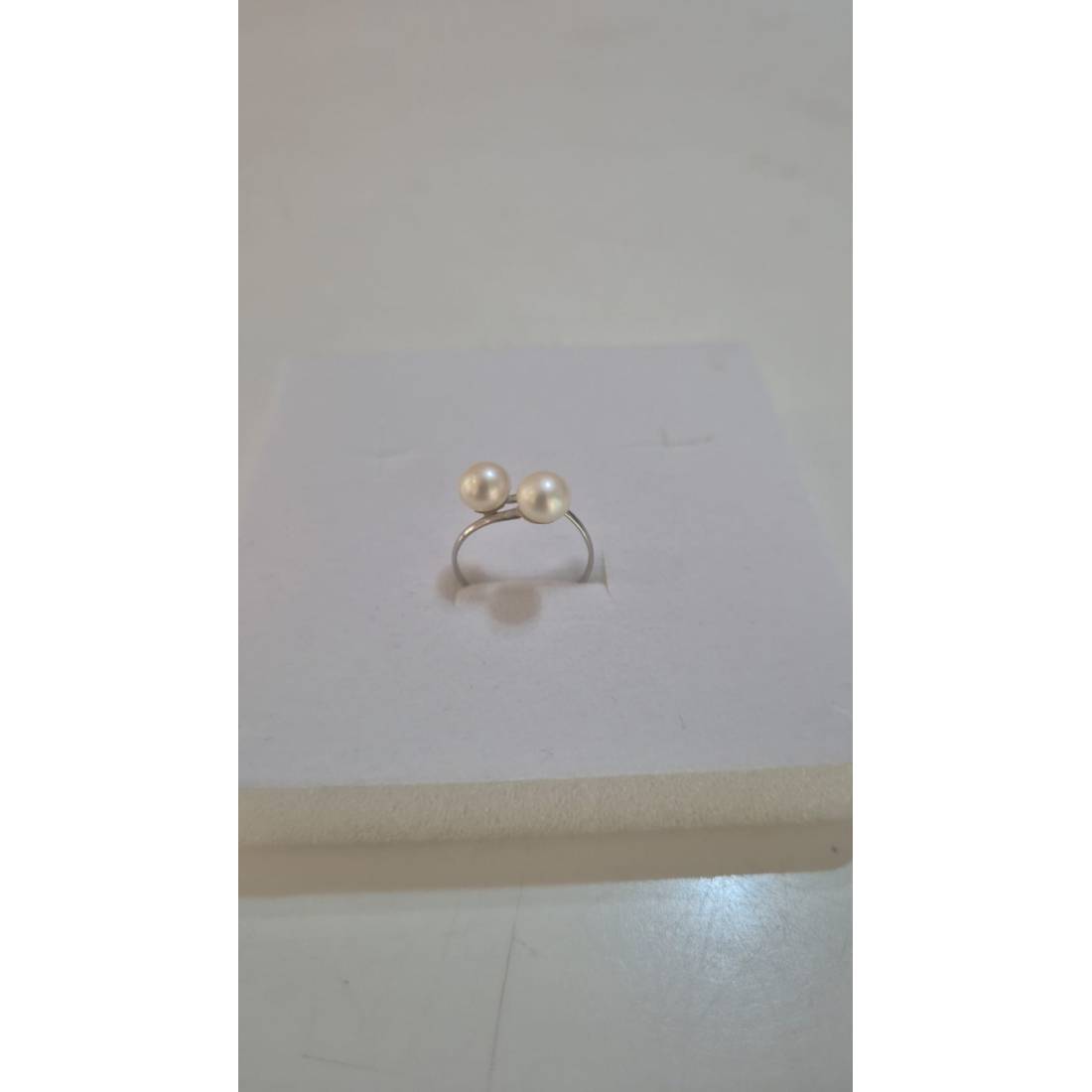 ANELLO Da Donna In ORO BIANCO 18 Karati 750% Con Perle Bianche Acqua Dolce Tonde