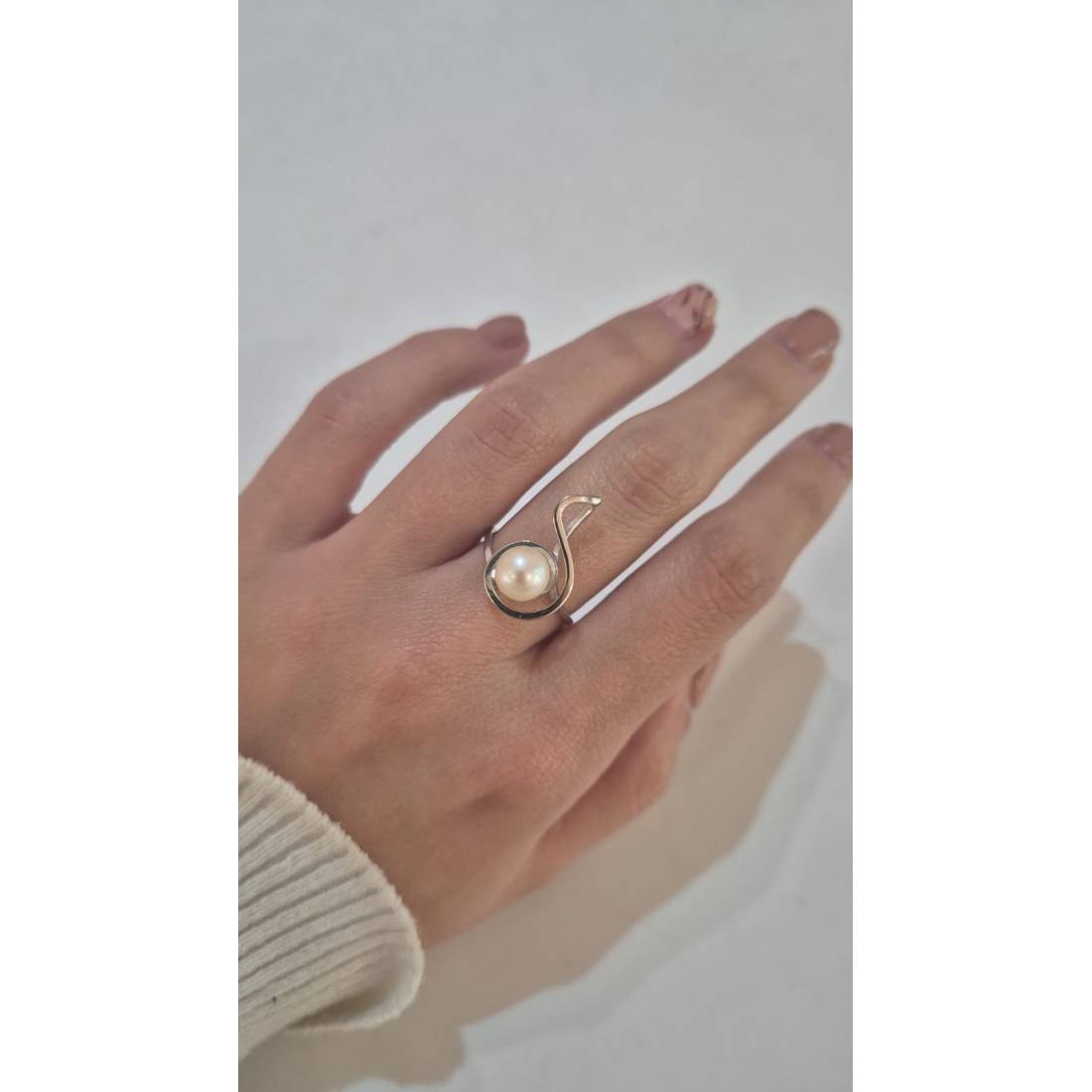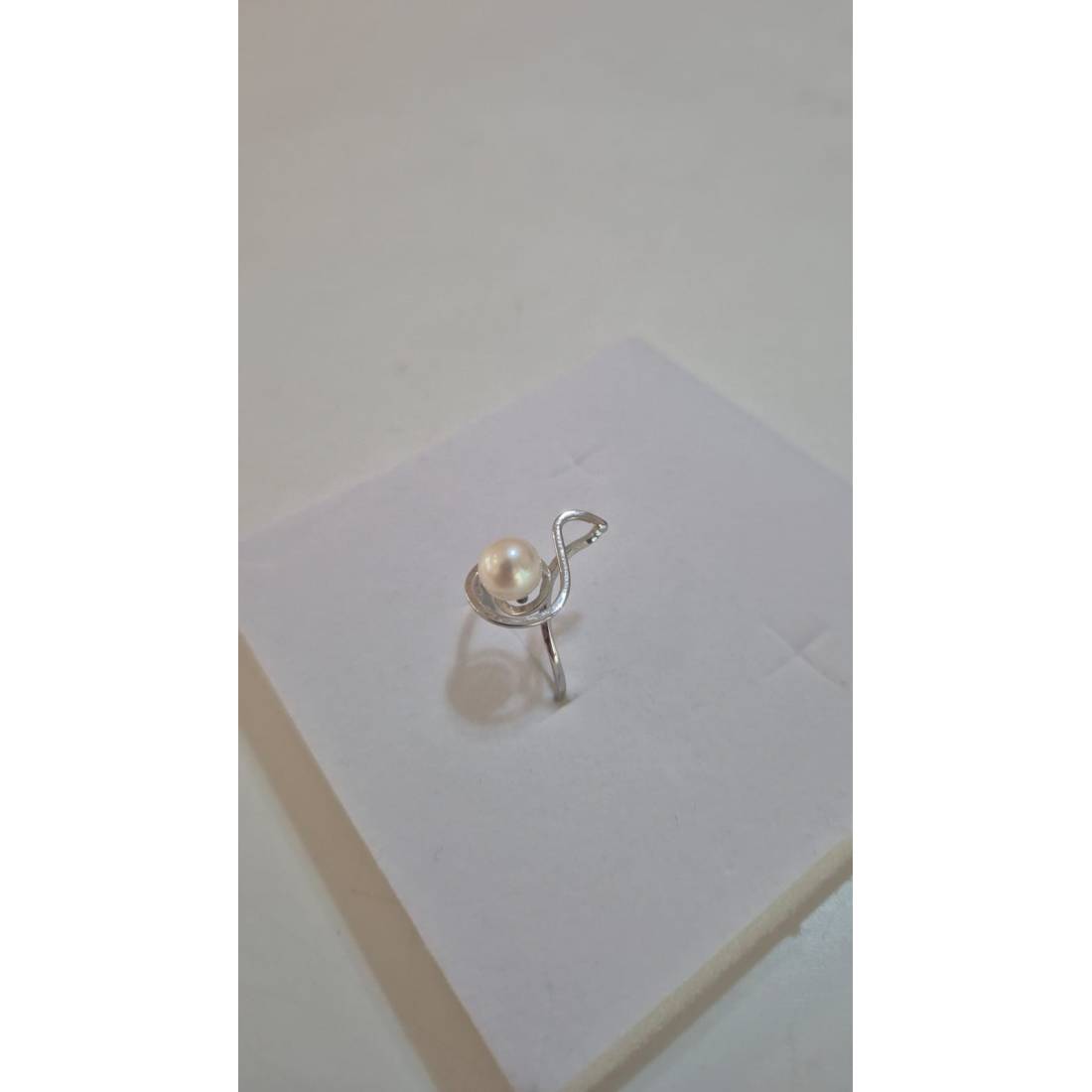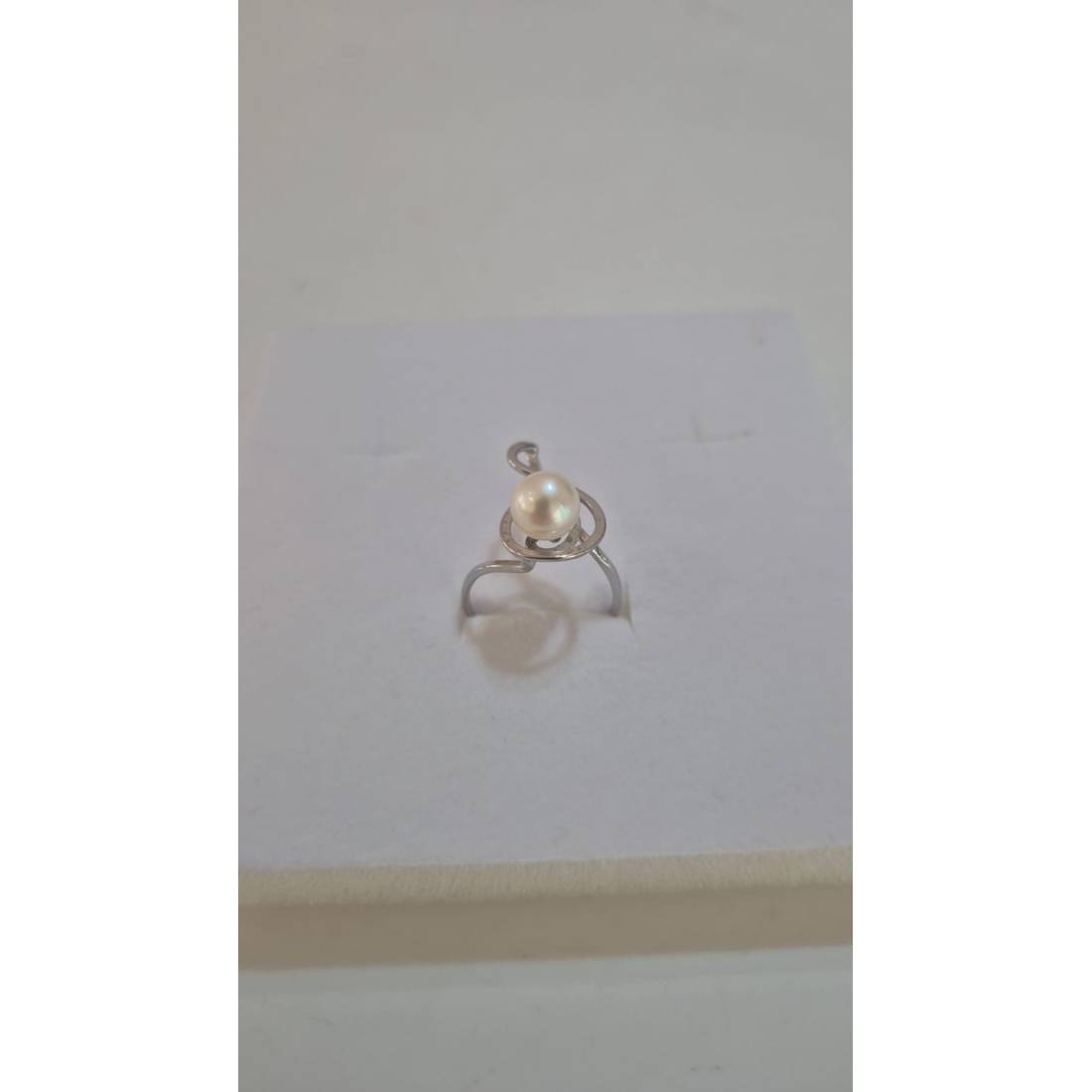 ANELLO Da Donna In ORO BIANCO 18 Karati 750% Con Perla Bianca Acqua Dolce Tonda