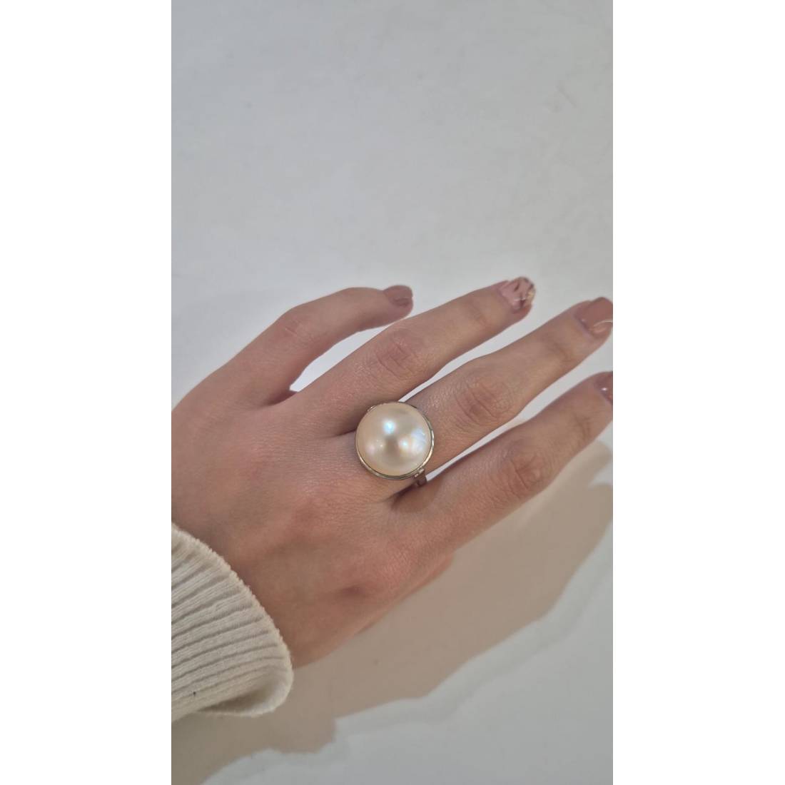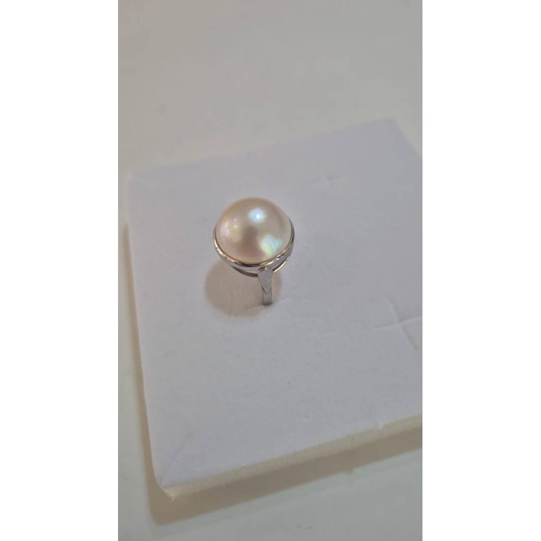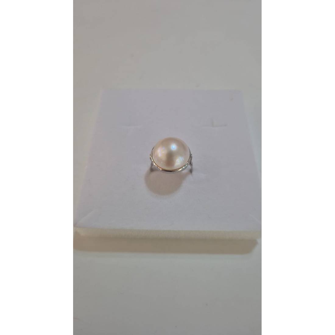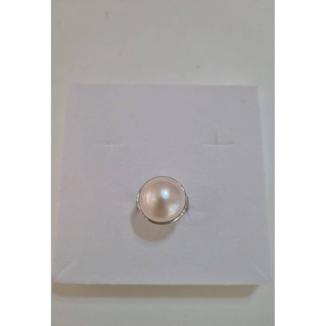 ANELLO Da Donna In ORO BIANCO 18 Karati 750% Con Perla Grande Bianca Acqua Dolce